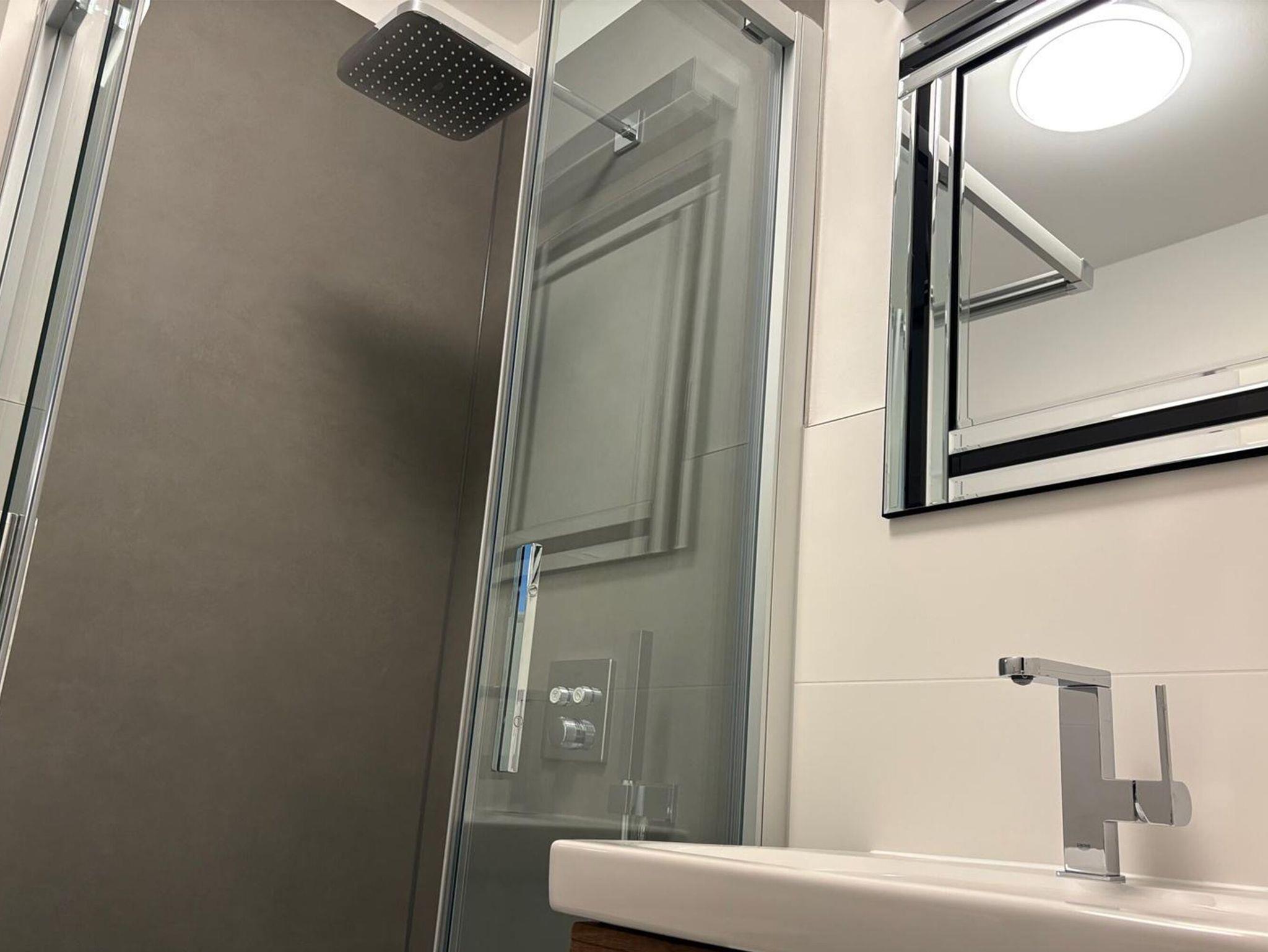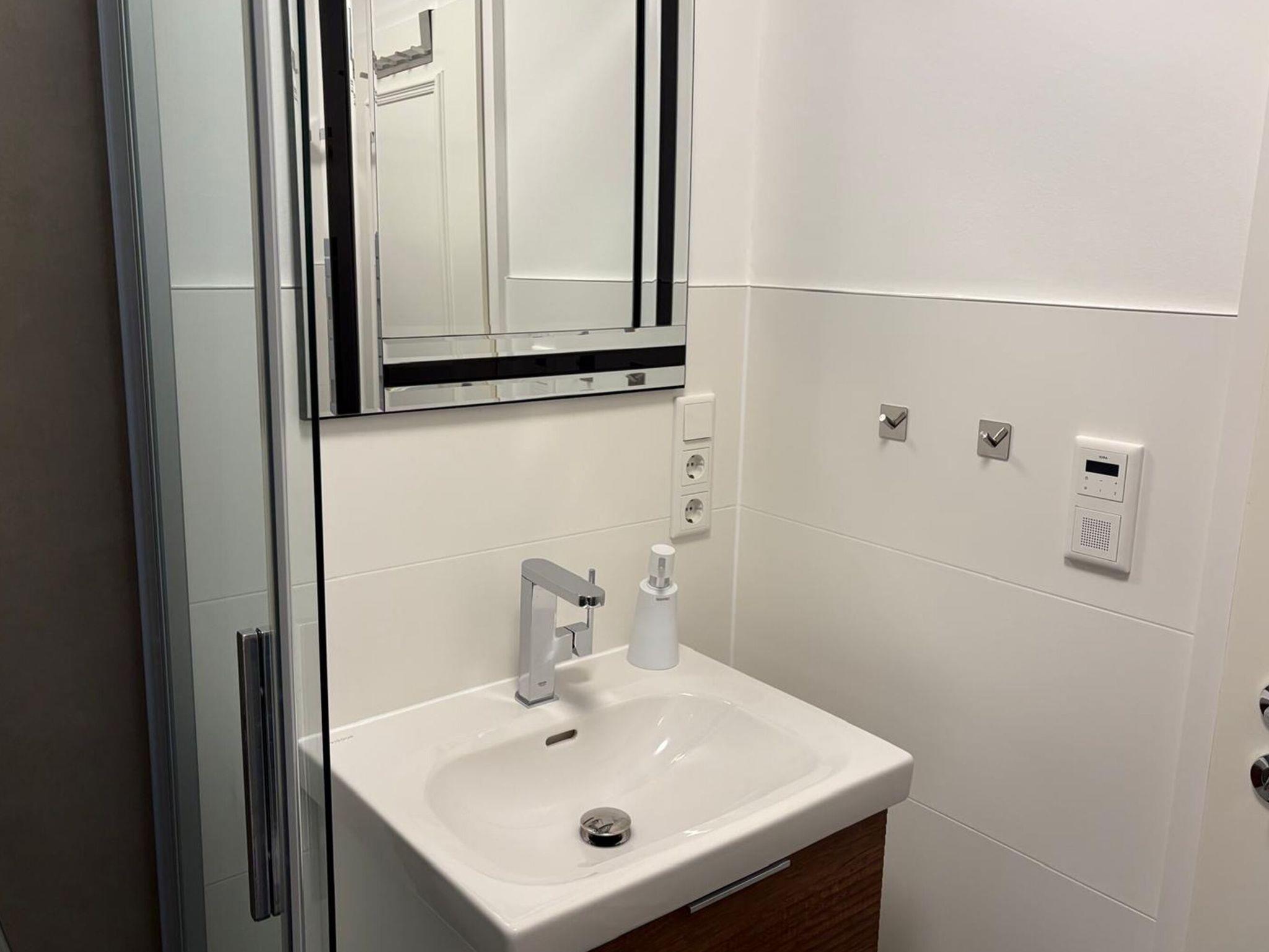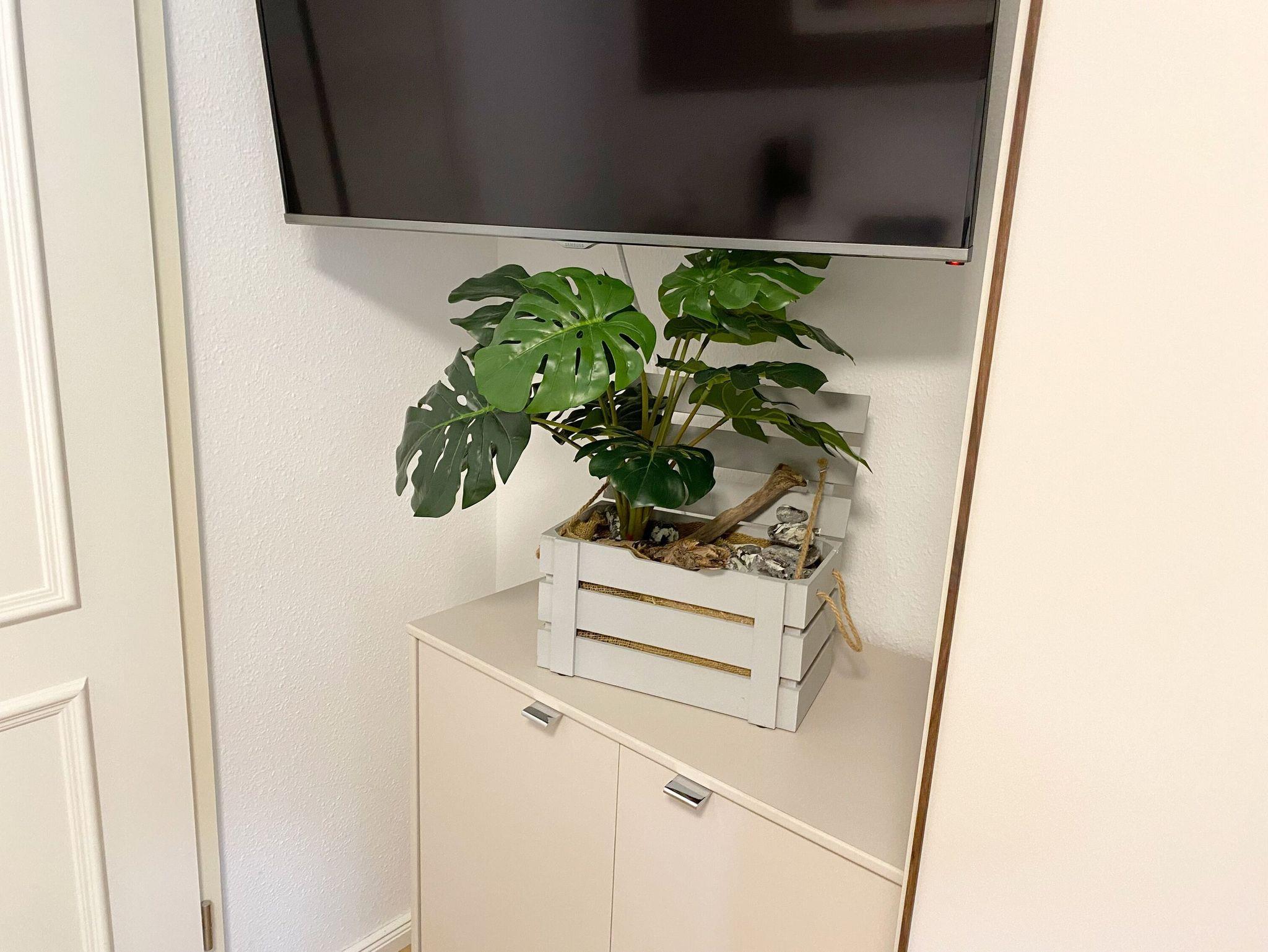 Das Appartement verfügt über ein Tageslichtbad mit Dusche/WC, Waschtisch, Kosmetikspiegel, Fön und Radio. Weiterhin gehören ein Safe, ein Bügeleisen mit Bügelbrett, Bücher, diverse DVD´s, Gesellschaftsspiele, sowie ein Staubsauger zur Ausstattung dazu.
