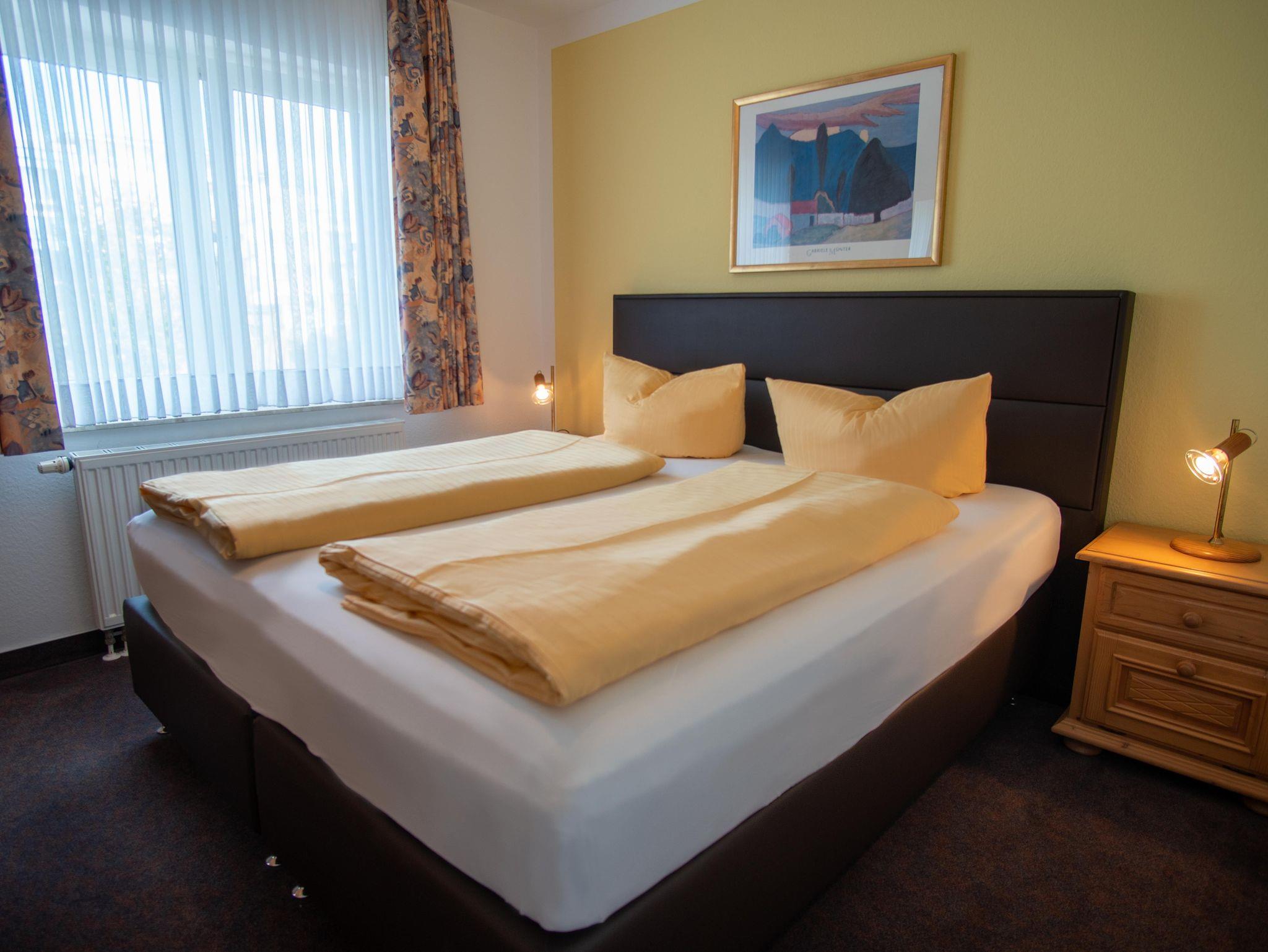 Die ca. 54 m² großen Appartements sind für bis zu 4 Personen geeignet. Sie bestehen aus einem Wohnzimmer mit Doppelschlafcouch einer gut ausgestatteten Küchenzeile und einem Esstisch. Das separate Schlafzimmer ist mit einem bequemen Doppelbett, einem Kleiderschrank und Nachtschränkchen mit Lampe ausgestattet. Die Ferienappatements verfügen über ein Badezimmer mit Dusche/WC und einem möblierten Balkon. Bettwäsche und Handtücher sowie die Endreinigung sind bei uns im Preis enthalten und die ausreichend zur Verfügung stehenden Parkplätze (einer pro gebuchtem Appartement) stellen wir unseren Gästen kostenfrei zur Verfügung.