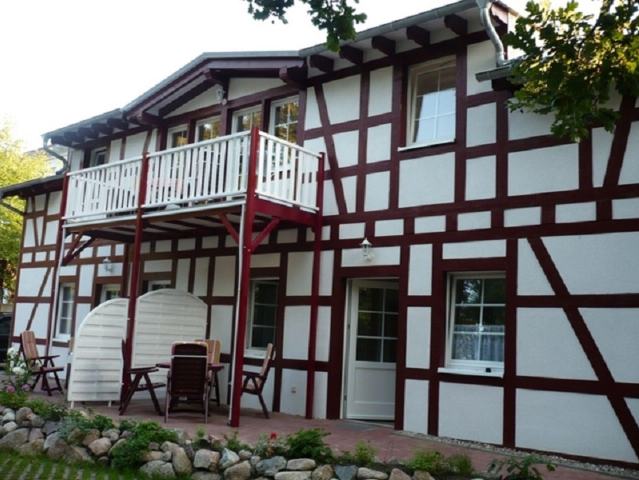 1 Ferienwohnung in der 1. Etage mit offenen Balkon. 47 m² 2 Schlafz., 1 Wohnküche, Bad.