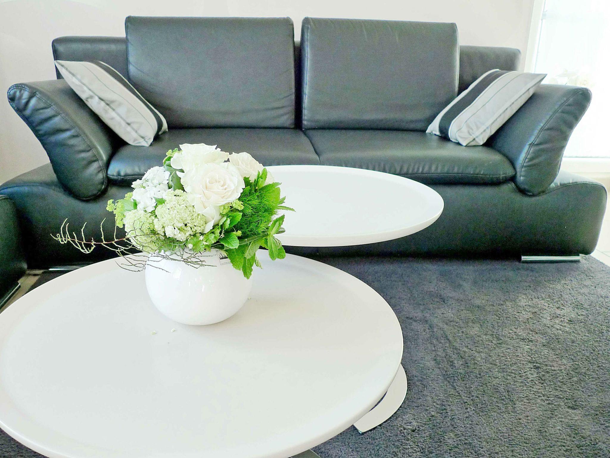 Vom Eingangsbereich aus gelangen Sie in den großen, modern ausgestatteten Wohnraum mit einer harmonisch in den Wohnbereich integrierten Küchenzeile und Essecke. Im Wohnbereich finden Sie einen Fernseher mit DVD-Blu-Ray-Player inkl. DVDs vor sowie eine Stereoanlage mit CD-Player und i-Pod/MP3-Dockstation. Ein Internetzugang per W-LAN sowie ein Telefon für Telefonate in das deutsche Festnetz stehen Ihnen kostenfrei zur Verfügung.