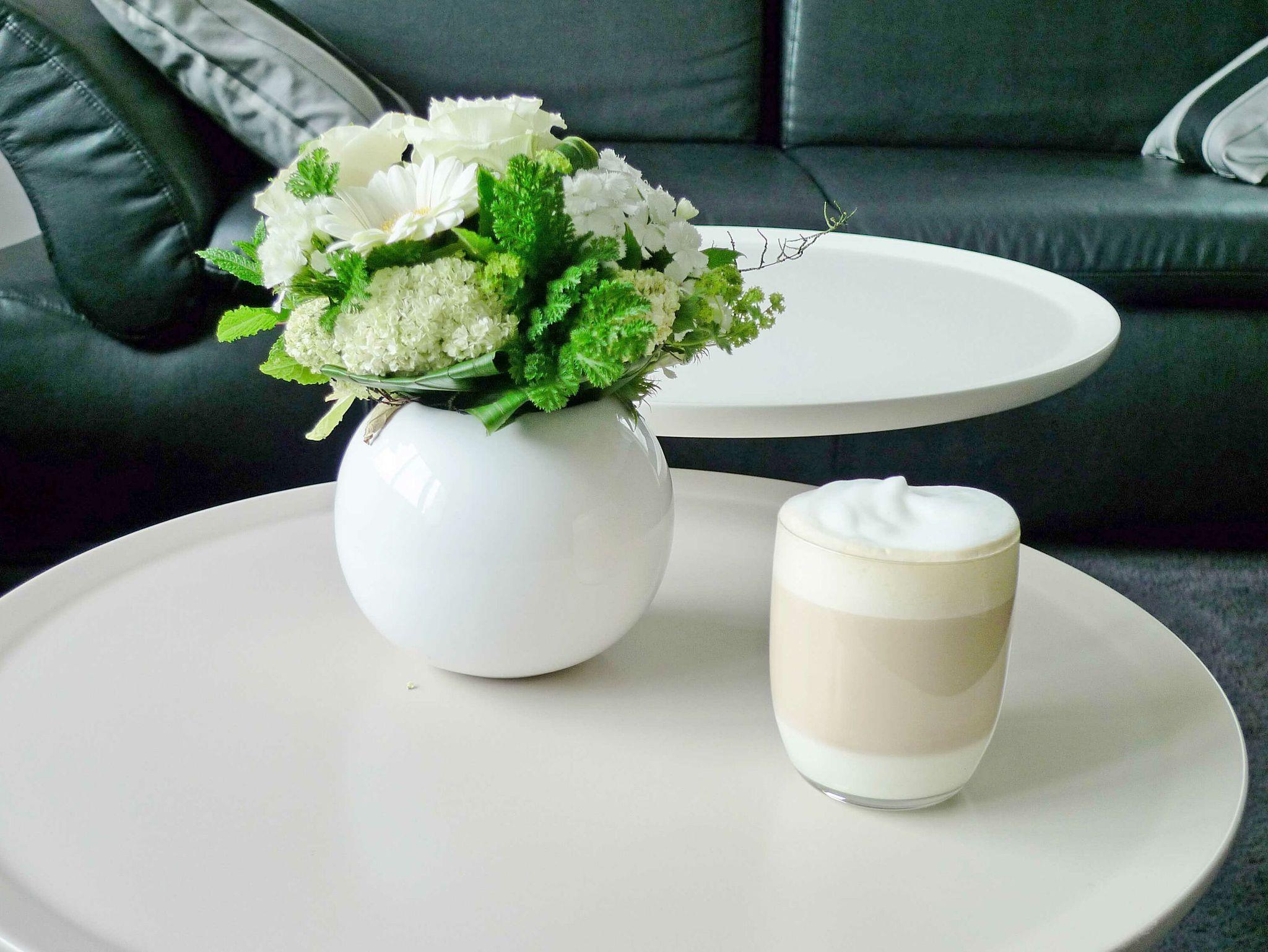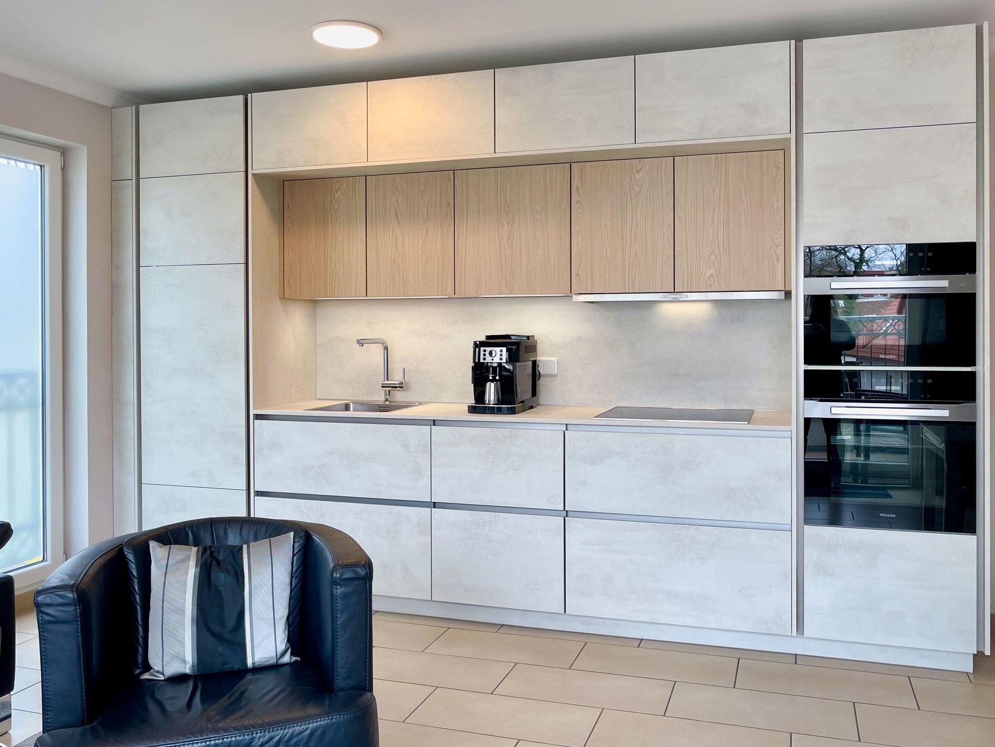 In der Küchenzeile befinden sich ein Kühlschrank mit Gefrierfach, ein Backofen, ein 4-Platten-Ceranfeld, eine Spülmaschine, eine Mikrowelle, ein De Longhi-Kaffeevollautomat für die Zubereitung von Kaffeespezailitäten inkl. Kaffee für den ersten Morgen sowie diverses Kleininventar, dass die Küchenausstattung komplettiert. Eine Filterkaffeemaschine und der Wasserkocher wurden im Küchenschrank untergebracht.