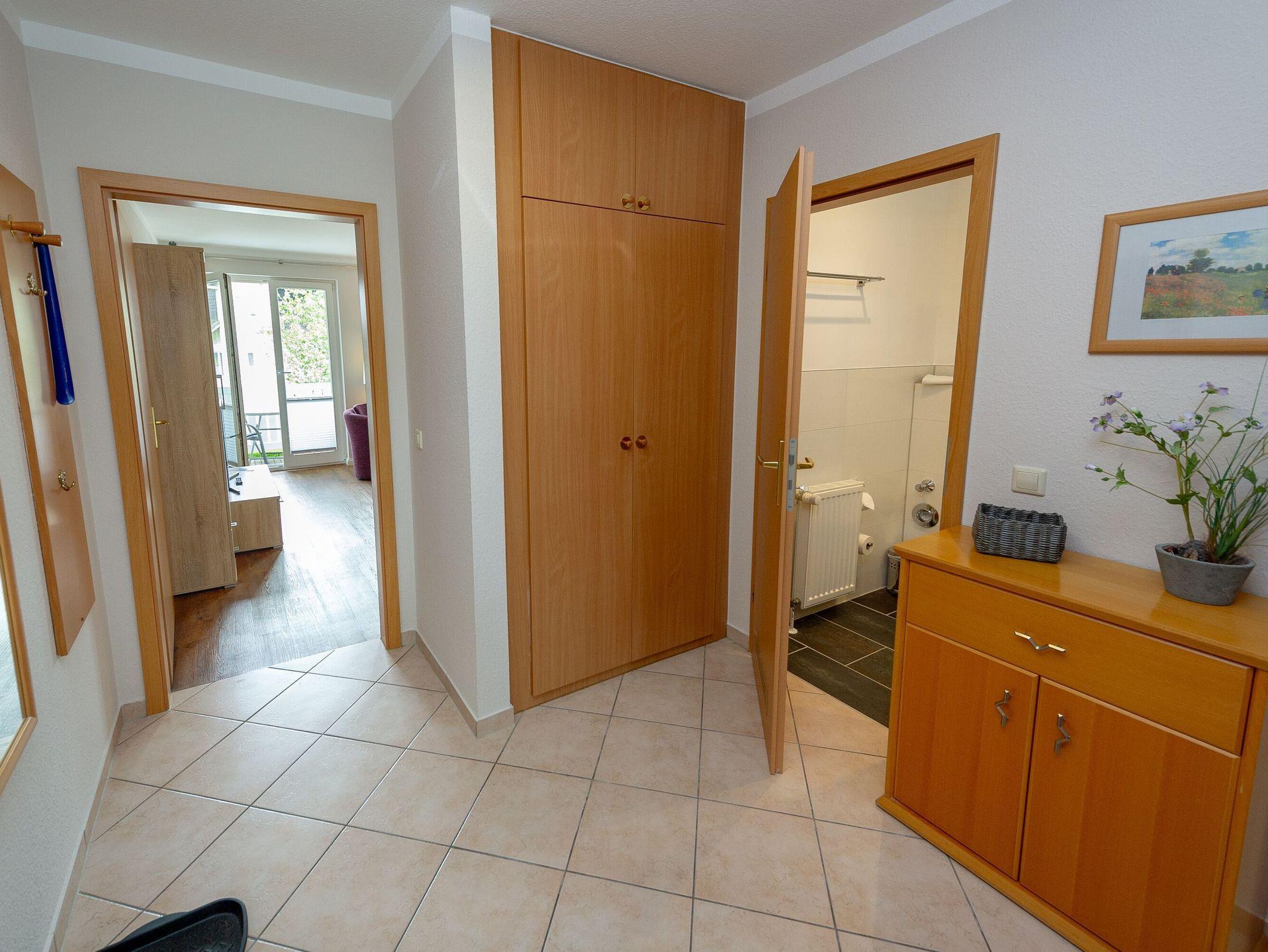 Dieses schöne 2-Raum-Appartement ist rund 42 m² groß und erwartet Sie im 1. Obergeschoss mit einem überdachten Balkon zur Südseite mit teilweise seitlichem Blick zum Schmachter See.