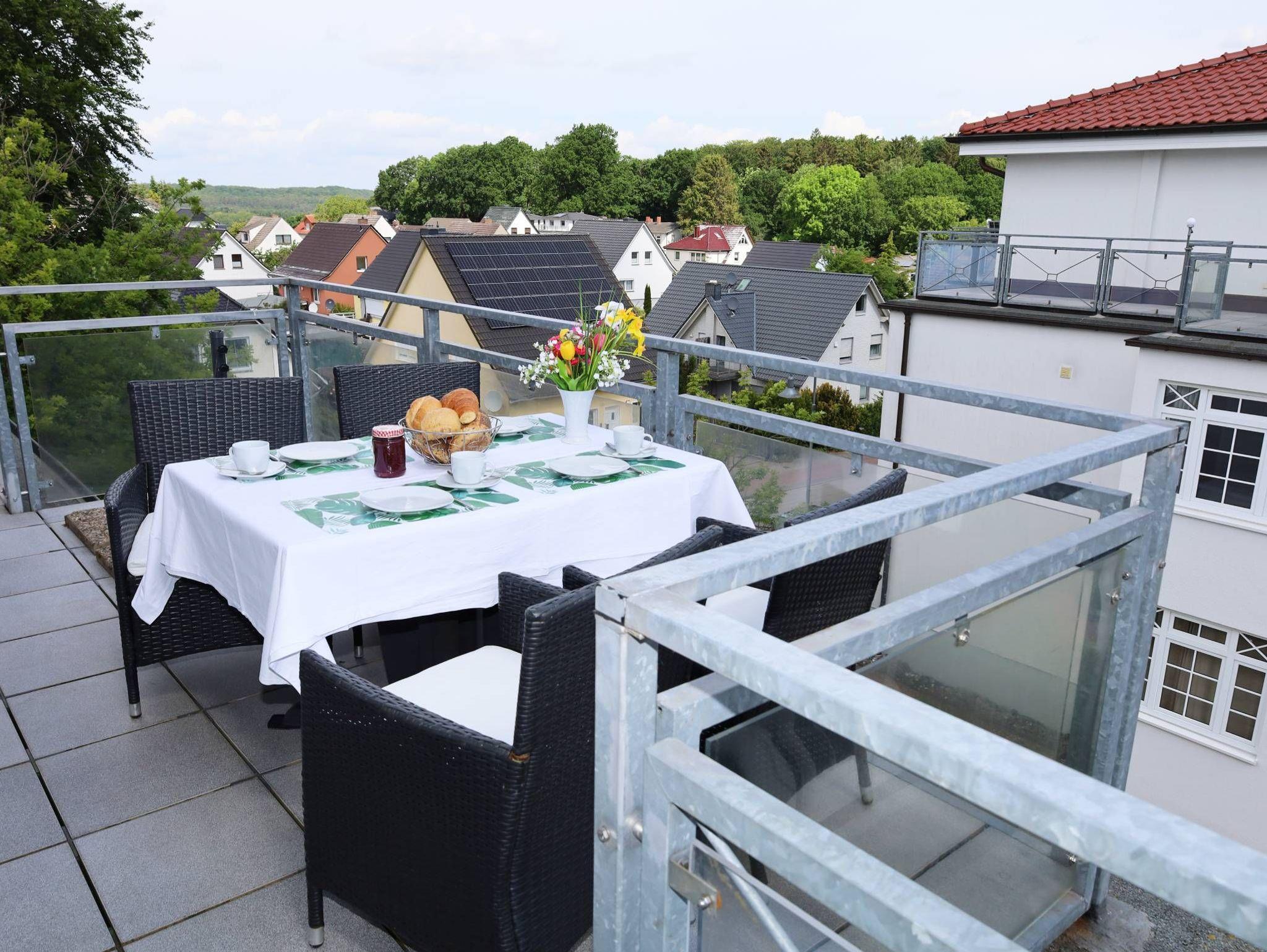 Ein besonderes Highlight des Penthouses ist die großzügig umlaufende Dachterrasse. Von hier aus genießen Sie einen atemberaubenden Blick über Binz, das Meer und die Granitz.