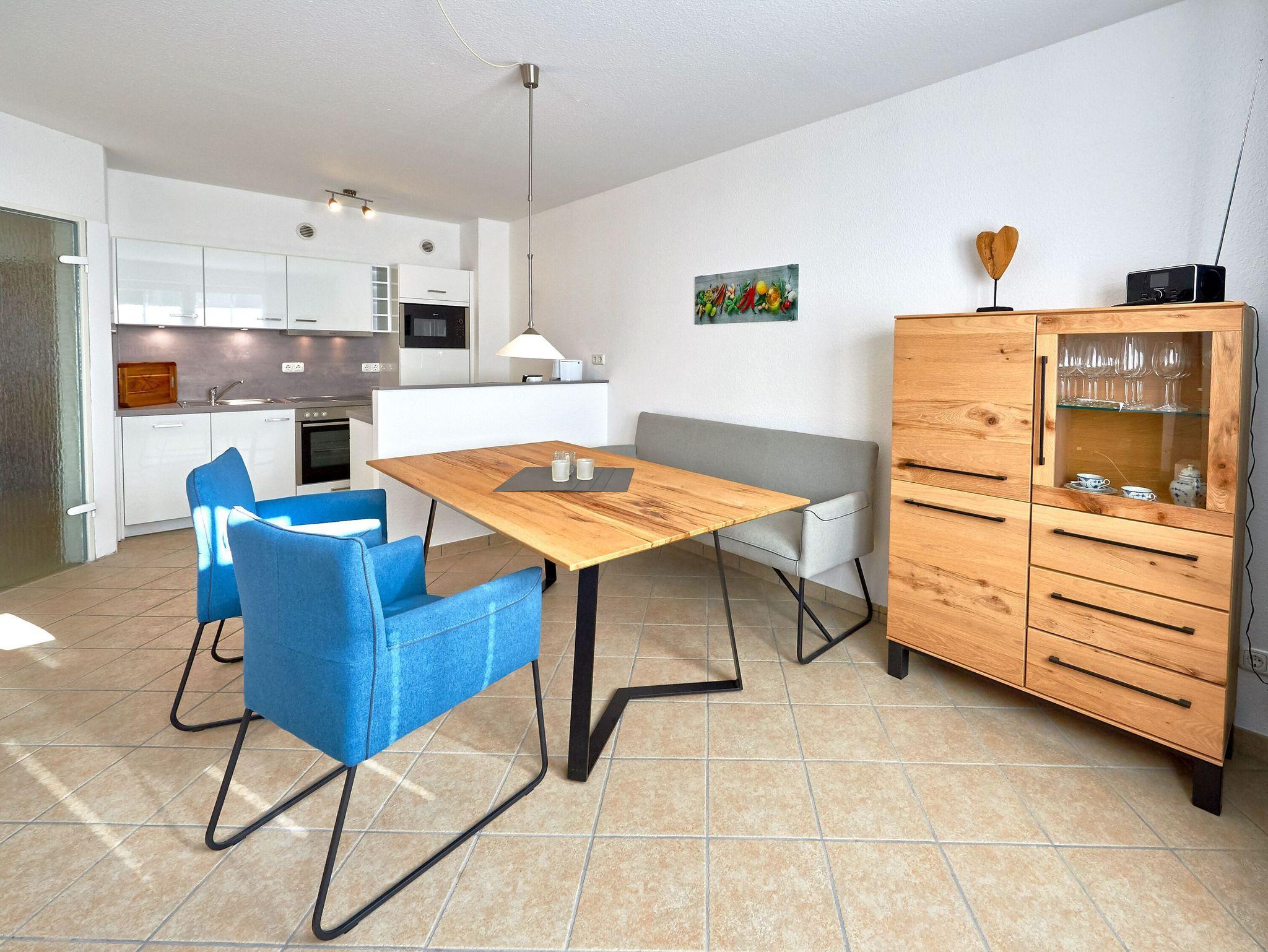 Die moderne Einbauküche ist bestens ausgestattet. Sie finden hier u.a. einen 4-Zonen-Ceranherd mit Backofen und Abzugshaube, eine Mikrowelle, einen Kühlschrank mit Gefrierfach, einen Geschirrspüler sowie eine Filterkaffeemaschine, einen Wasserkocher und einen Toaster. Selbstverständlich mangelt es auch nicht am nötigen Koch- und Essgeschirr. Der nächste Einkaufsmarkt mit Bäcker ist übrigens nur ca. 250 Meter entfernt.