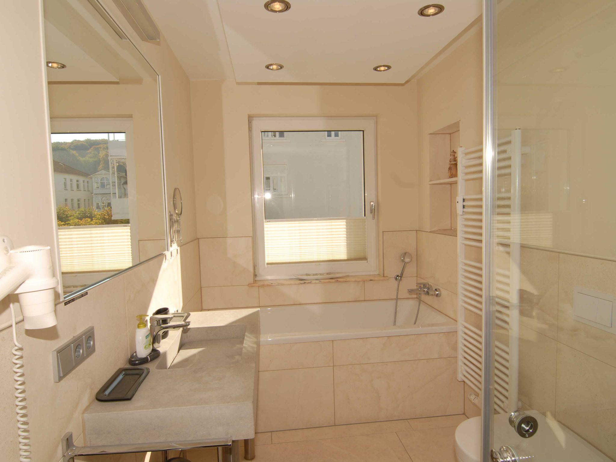 Die neue Villa Allegra im Herzen des Ostseebades Binz bietet Ihnen sehr moderne und elegant eingerichteten Zwei- und Dreiraumappartements. Die Größe der Ferienwohnungen variiert zwischen 39 und 110 m². Alle Wohnungen haben einen großzügien und hellen Wohnraum mit integrierter offener Küche. Das komfortable moderne Sofa im Wohnraum kann zum Teil als Schlafgelegenheit genutzt werden. In den separate, schön gestalteten Schlafzimmer/Schlafzimmern befinden sich ein z.T. Boxspringbetten mit Nachtkonsolen, die Fenster sind mit Verdunkelungsplissees und/ oder Verdunkelungsgardinen versehen. Die Bäder sind hochwertig mit Marmor, modern und sehr elegant ausgestattet. Jede Wohnung ist mit dem Lift erreichbar.