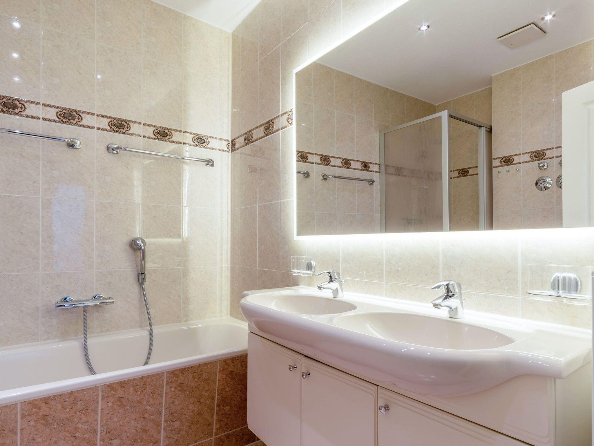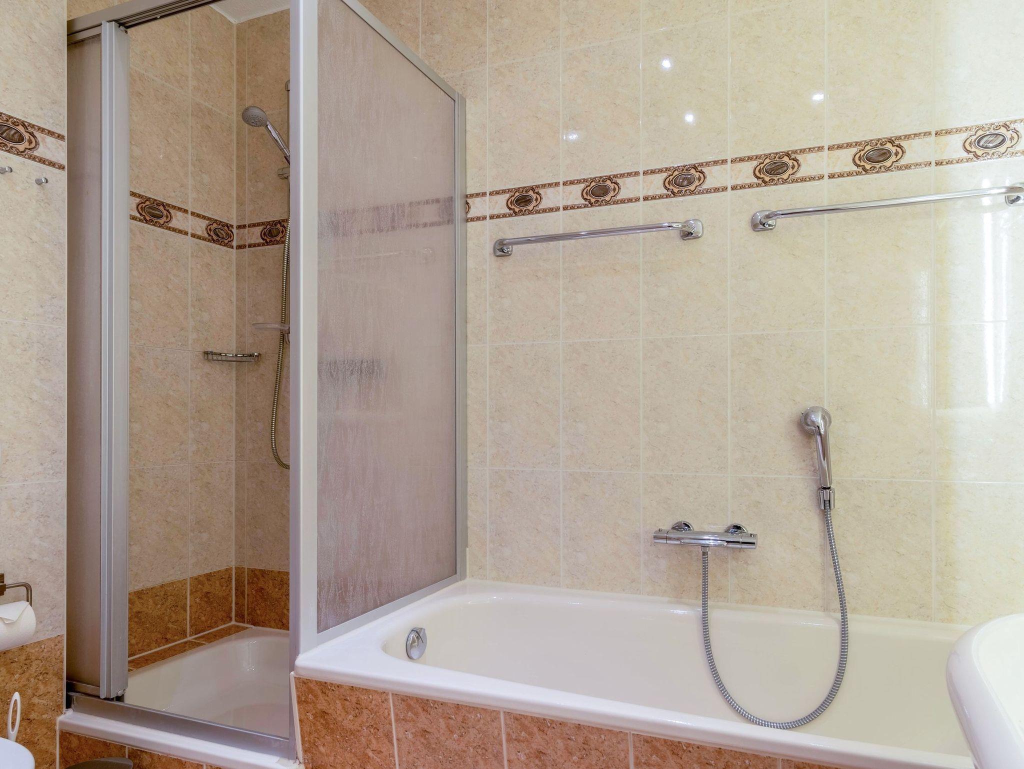 Das 2. Schlafzimmer ist mit einem Doppelbett, Kleiderschrank und einem weiterem TV - Gerät ausgestattet. Das Hauptbad ist mit Badewanne und Dusche ausgestattet, außerdem ist ein zusätzliches Gäste-WC vorhanden.