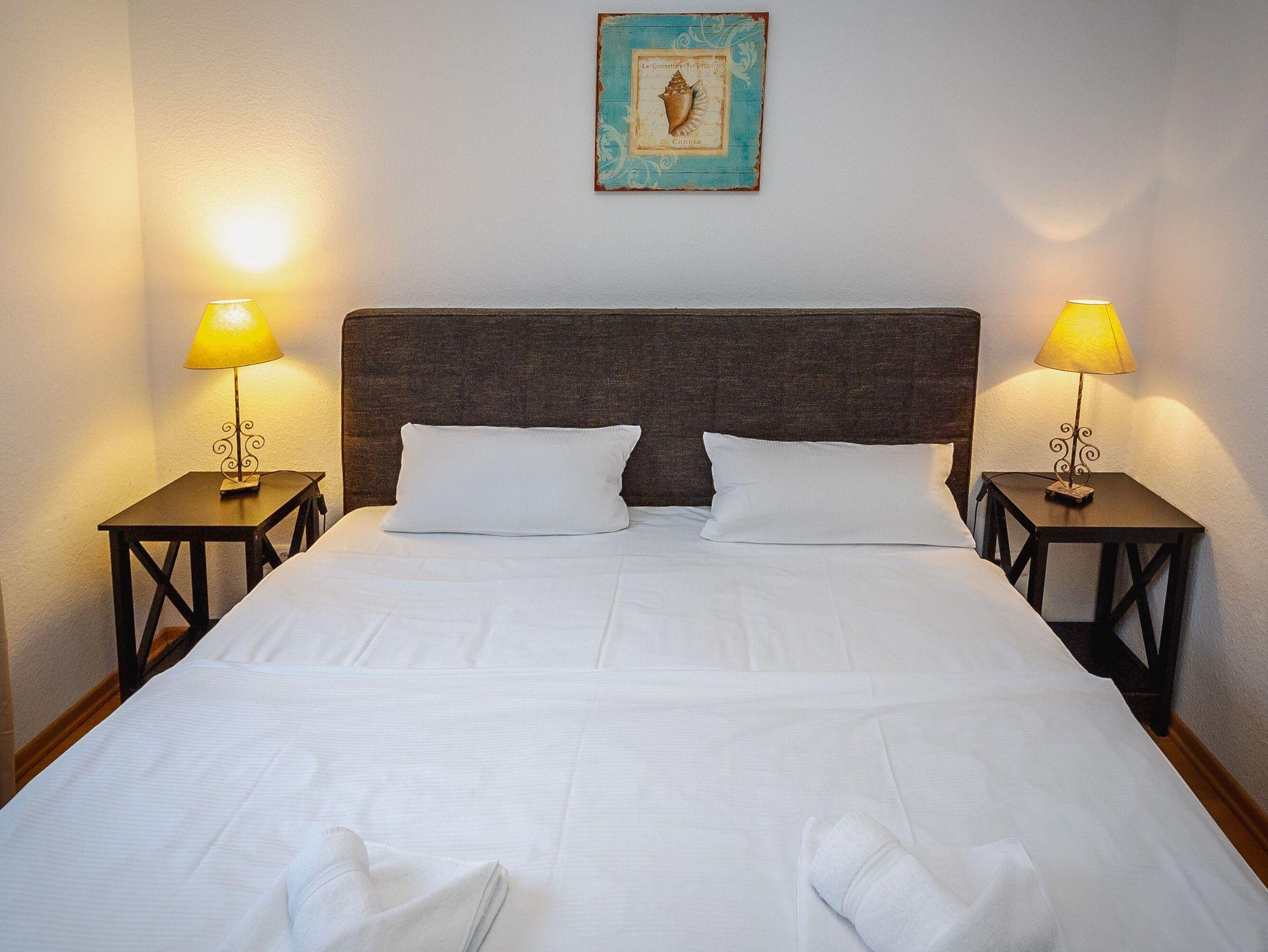 Ihr Zuhause auf Zeit verfügt über zwei separate Schlafzimmer. Diese sind jeweils mit einem bequemen Boxspring-Doppelbett (1,80 x 2,00 m) und einem Kleiderschrank für die Urlaubsgarderobe ausgestattet. In einem Schlafzimmer gibt es einen weiteren Fernseher.