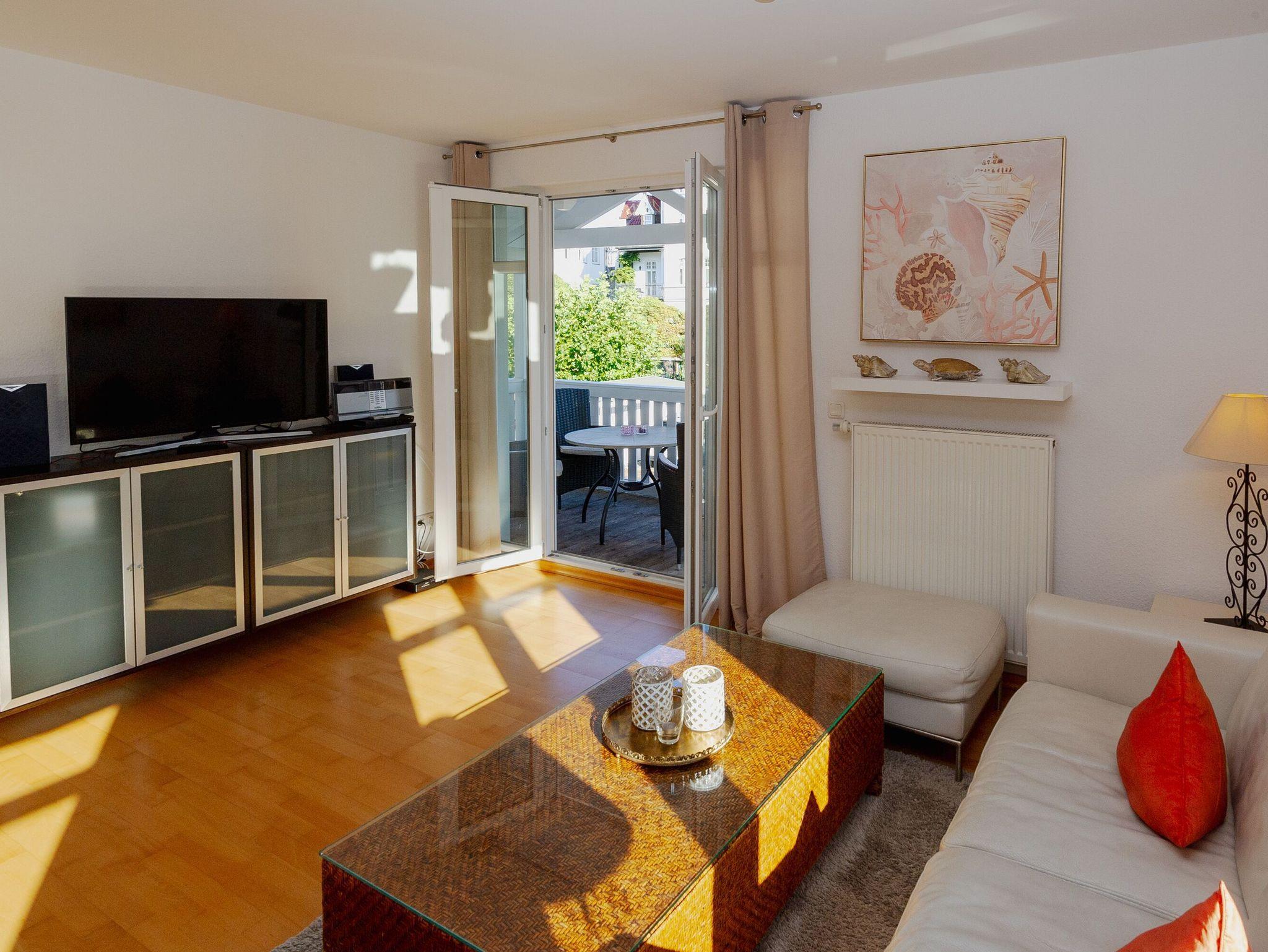 Eintreten und wohlfühlen! Dieses tolle 3-Zimmer-Appartement im ersten Obergeschoss ist rund 68 qm groß und modern und komfortabel eingerichtet. Auf Ihrem Balkon zur Morgensonne hören Sie bei Ostwind die Ostseewellen rauschen und können sogar einen kleinen Meerblick erhaschen.