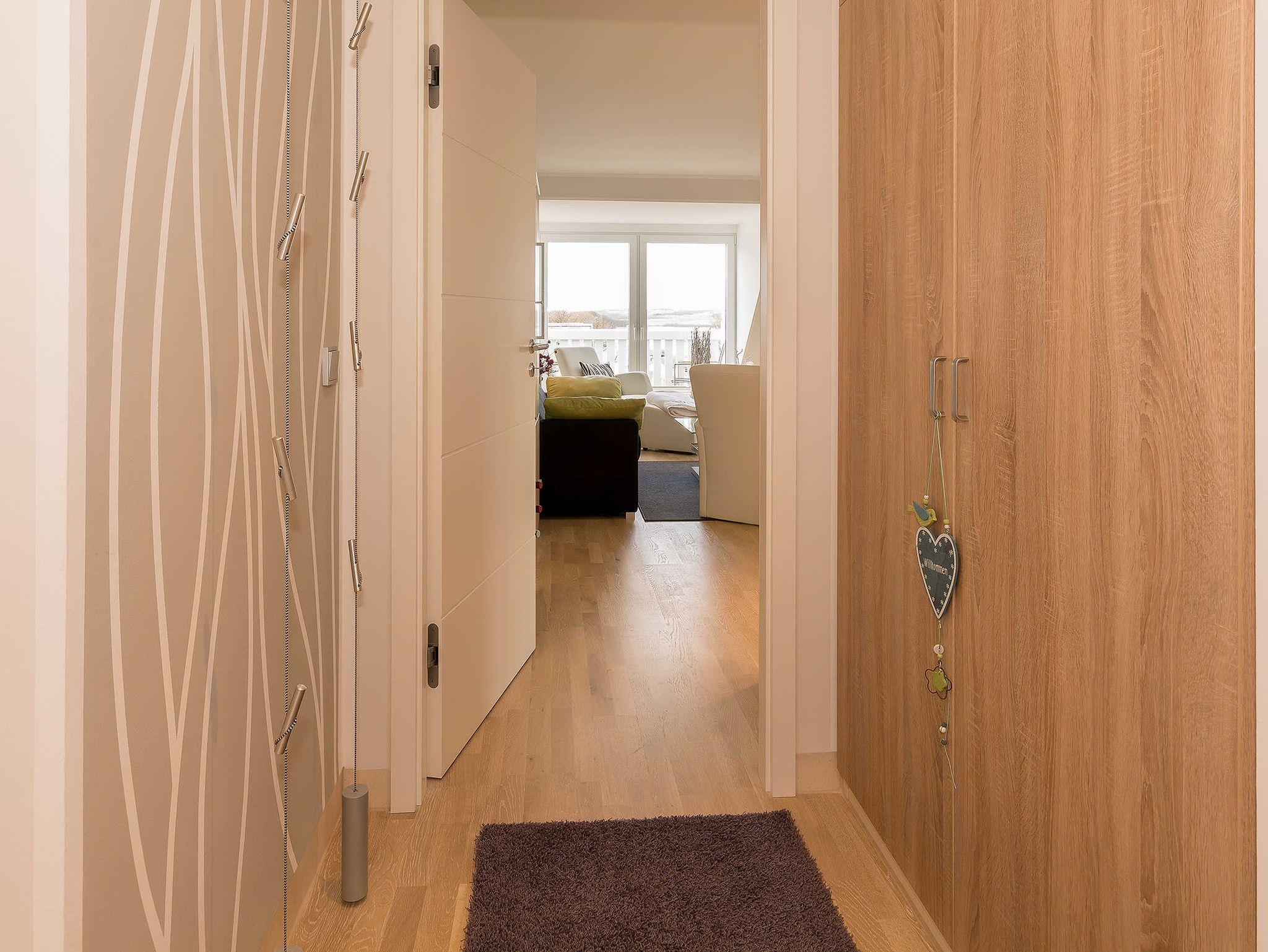 Im Flur befindet sich ein großer Garderobeneinbauschrank und eine Designergarderobe.