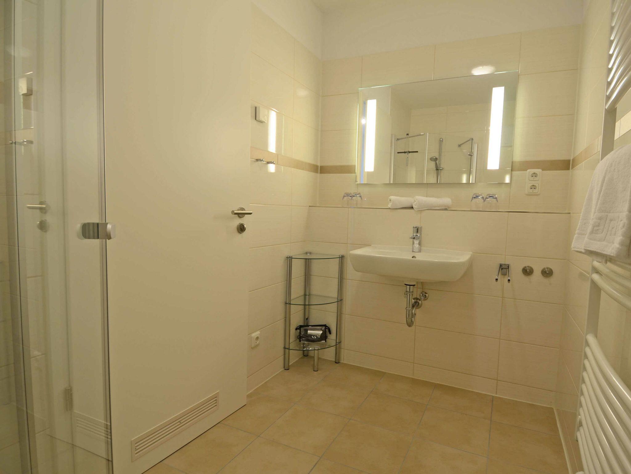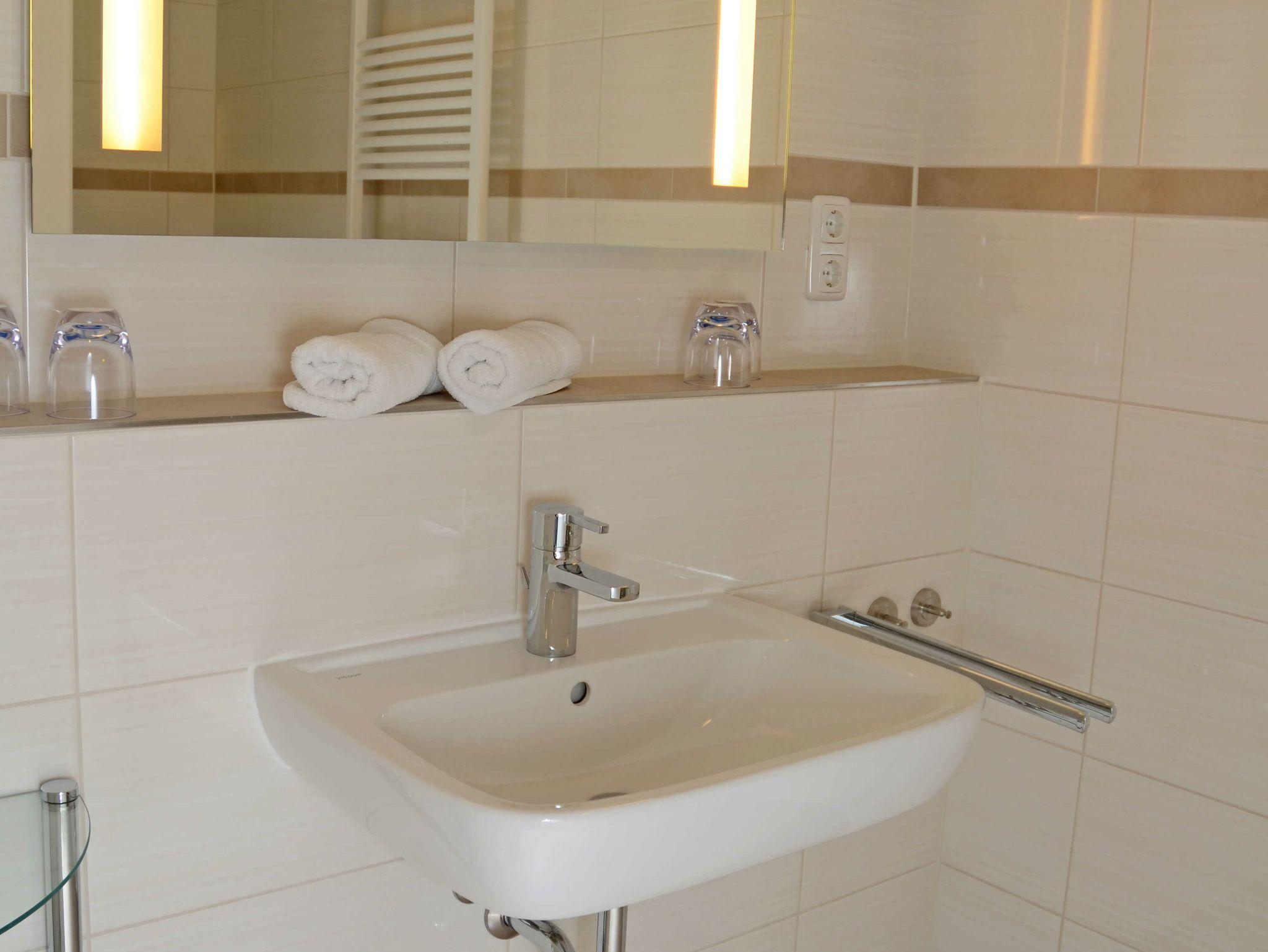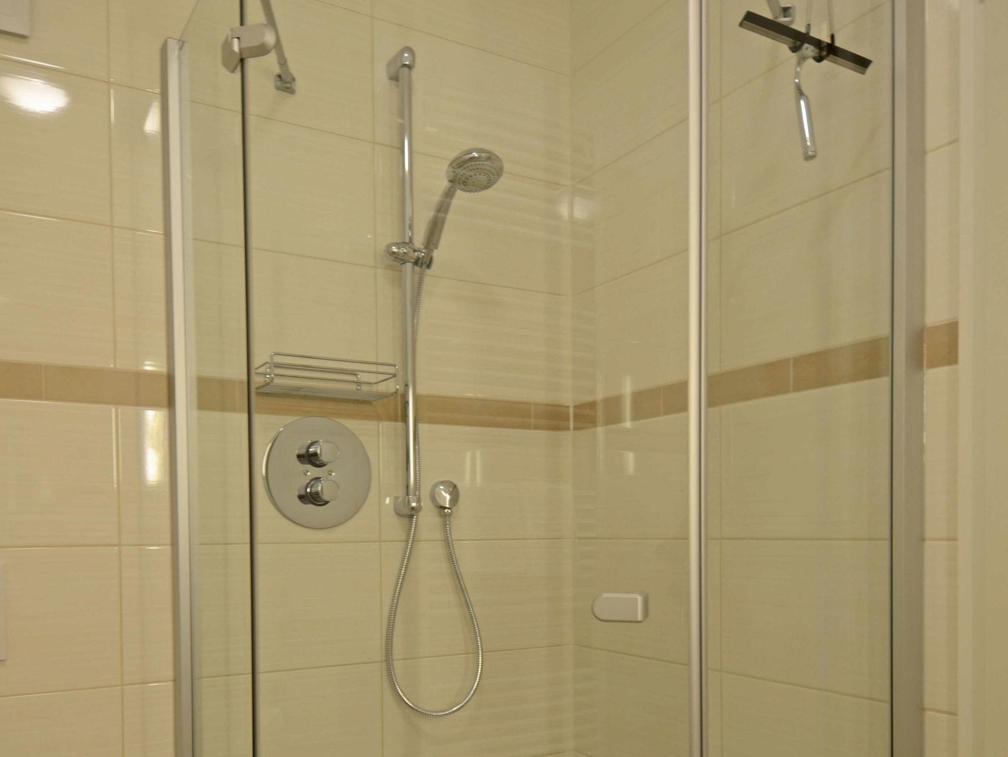 Die Wohnung verfügt ebenfalls über ein modernes Duschbad. Ein Haartrockner steht zur Verfügung.