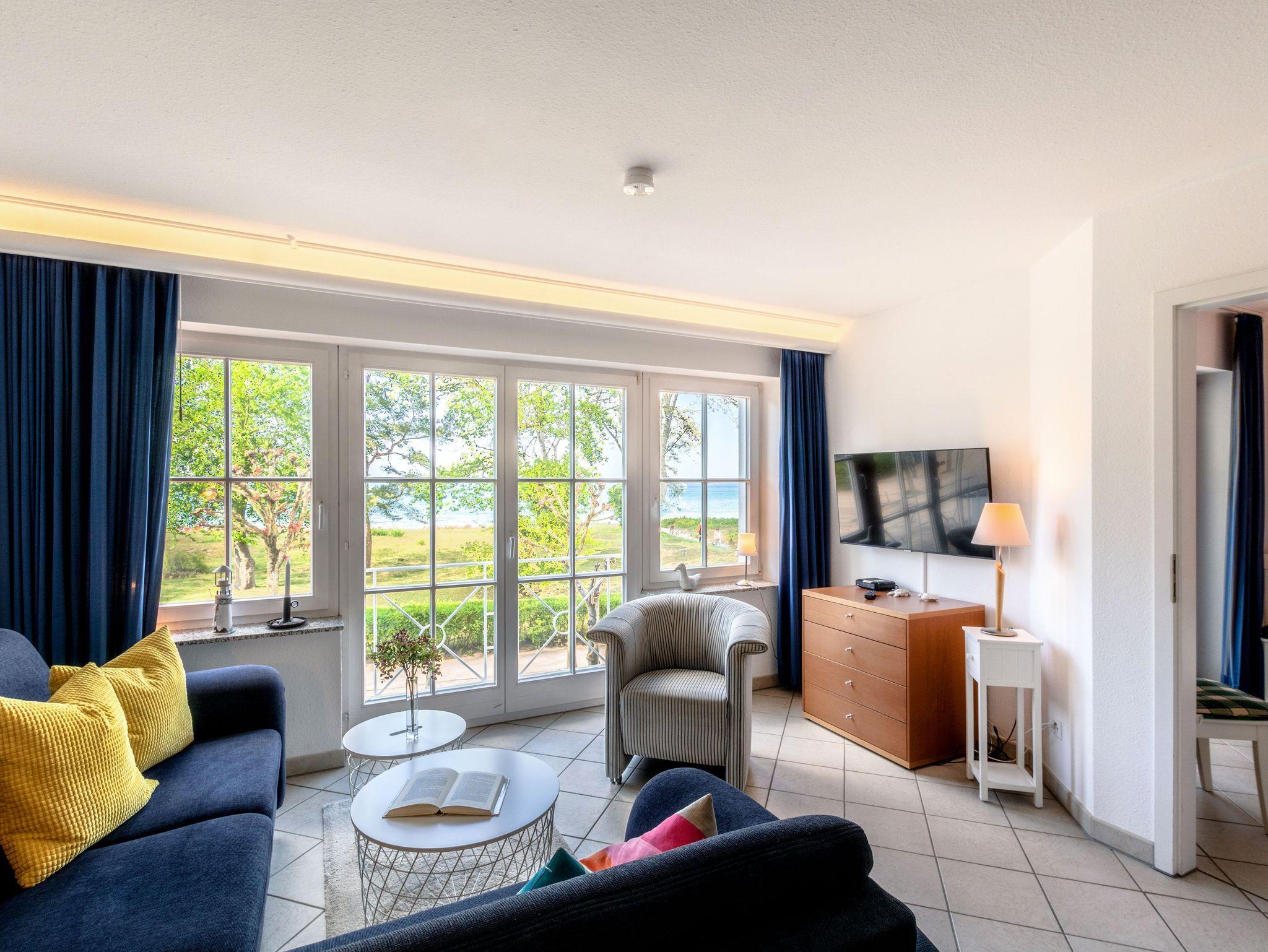 Sie erwarten stilvoll eingerichtete 1 - 3 Zimmer-Ferien-Apartments, mit Balkon mit frontalem Meerblick oder mit Südbalkon mit Blick in den Granitzer Wald, Pkw-Stellplatz am Haus, Waschmaschine und Trockner gegen Gebühr sowie ein Strandkorb in der Sommersaison. In allen Apartments steht Ihnen WLAN zur Verfügung. Ein Fahrstuhl ist im Seeschloss vorhanden, womit Sie ganz komfortabel die Apartments erreichen.