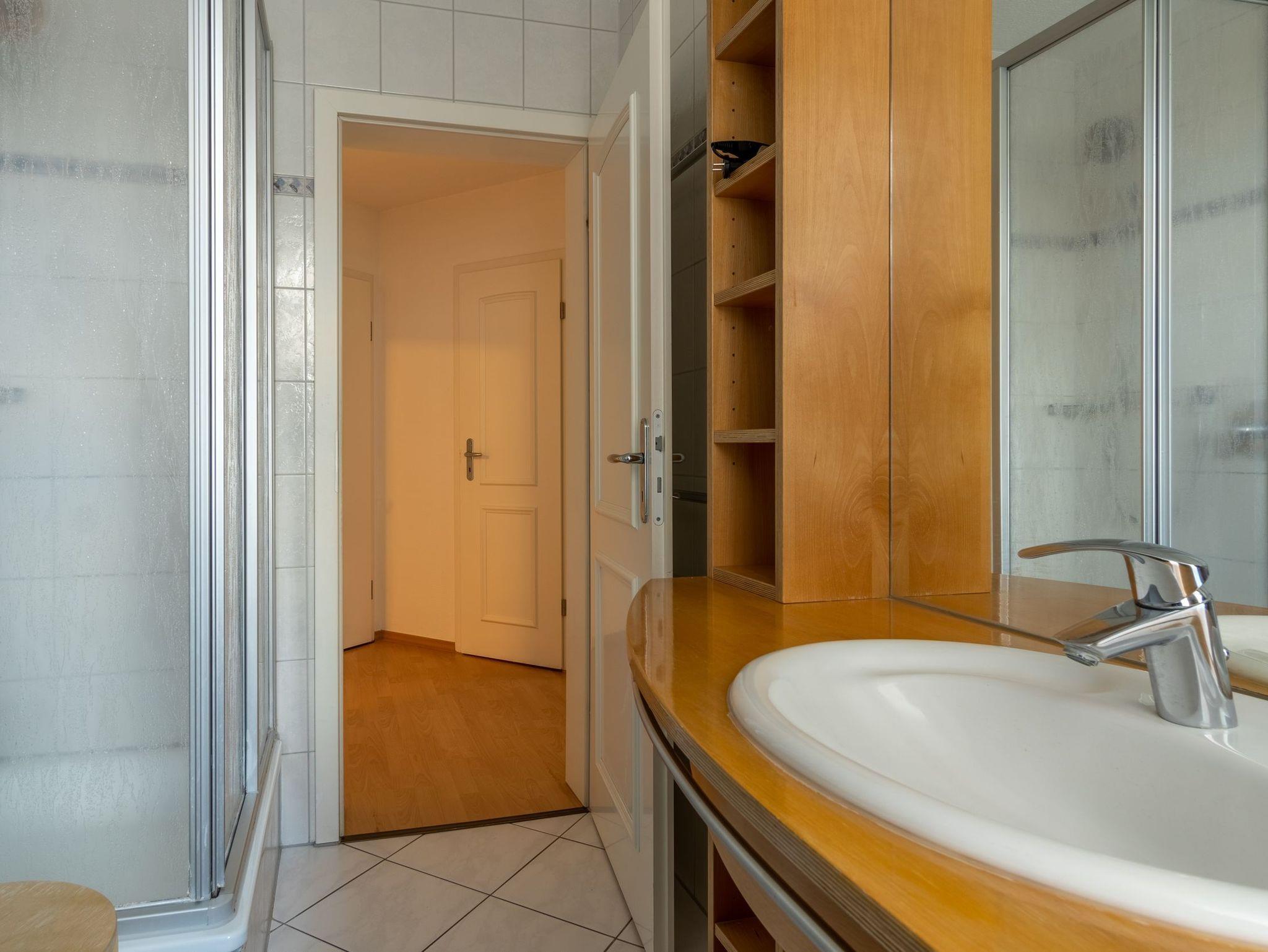 Das Apartment verfügt über ein großes Duschbad mit Fenster.