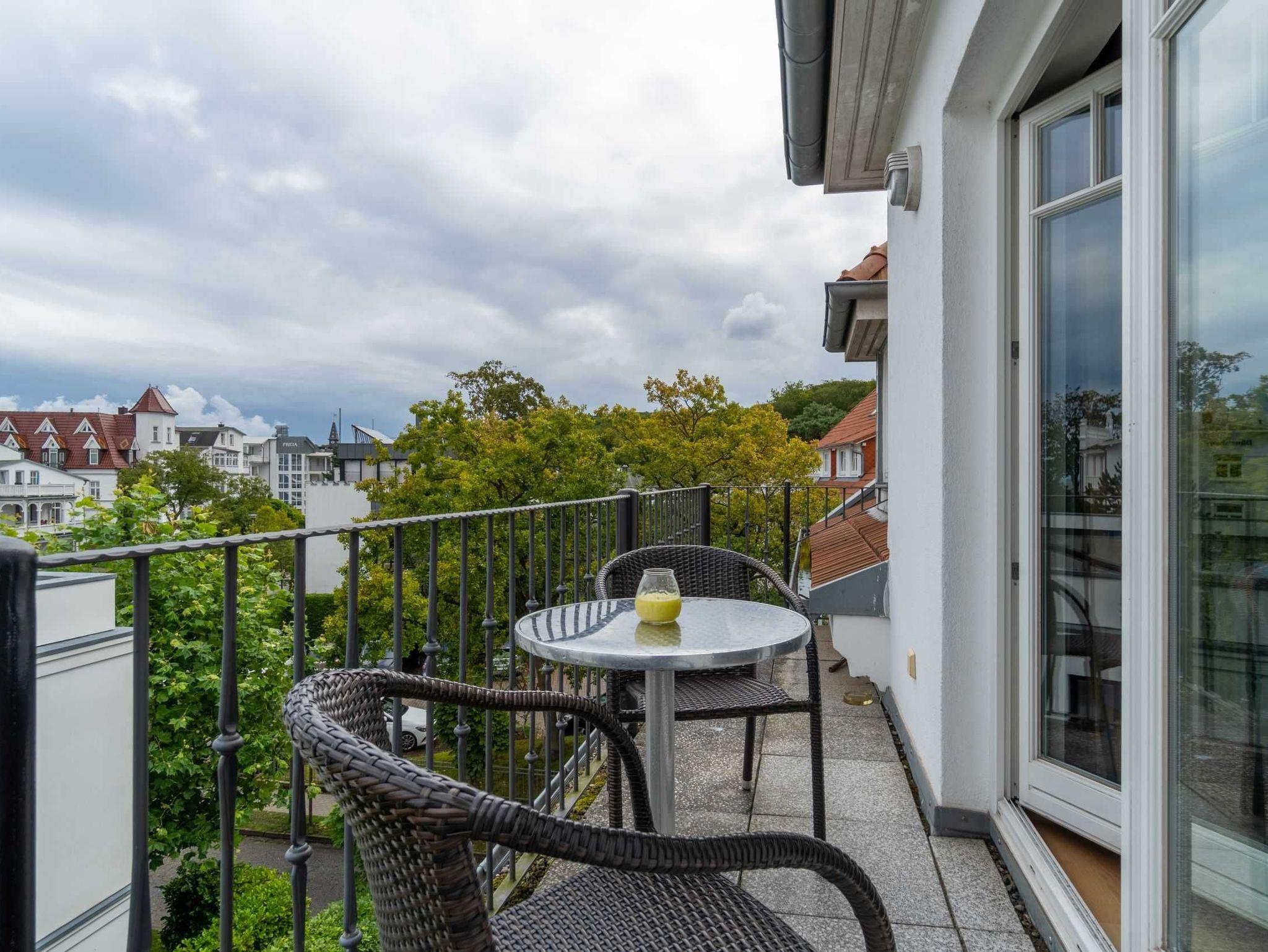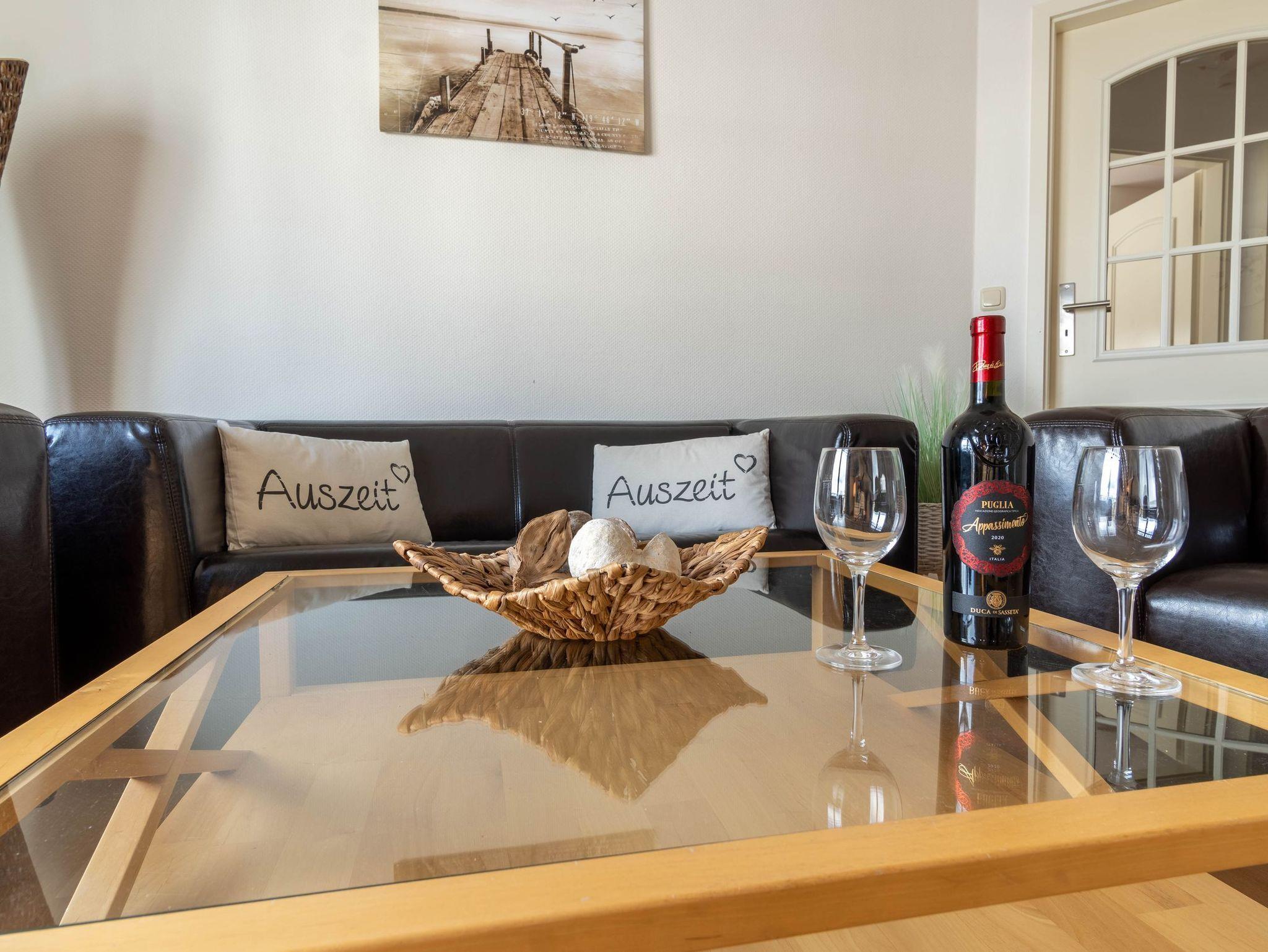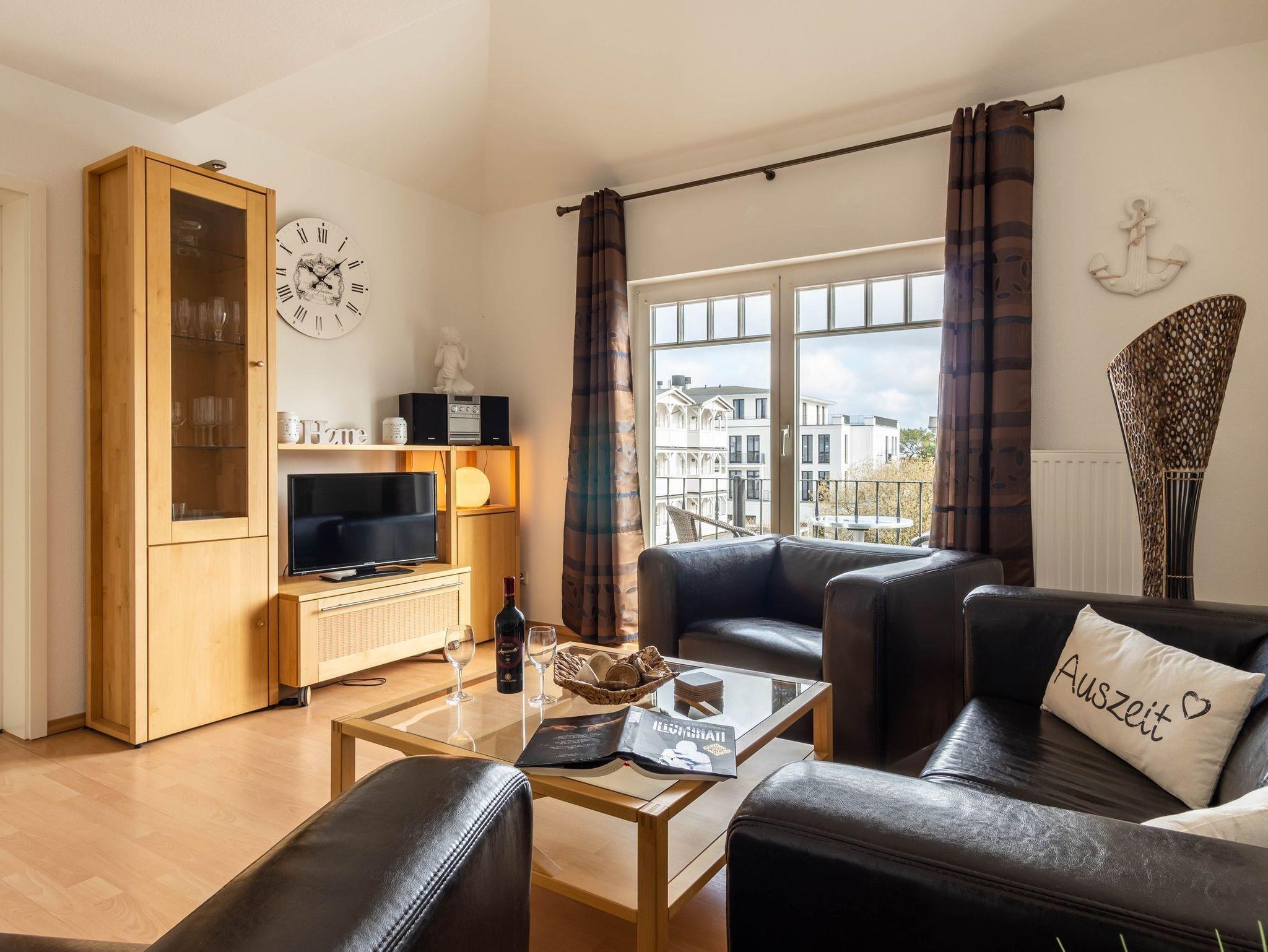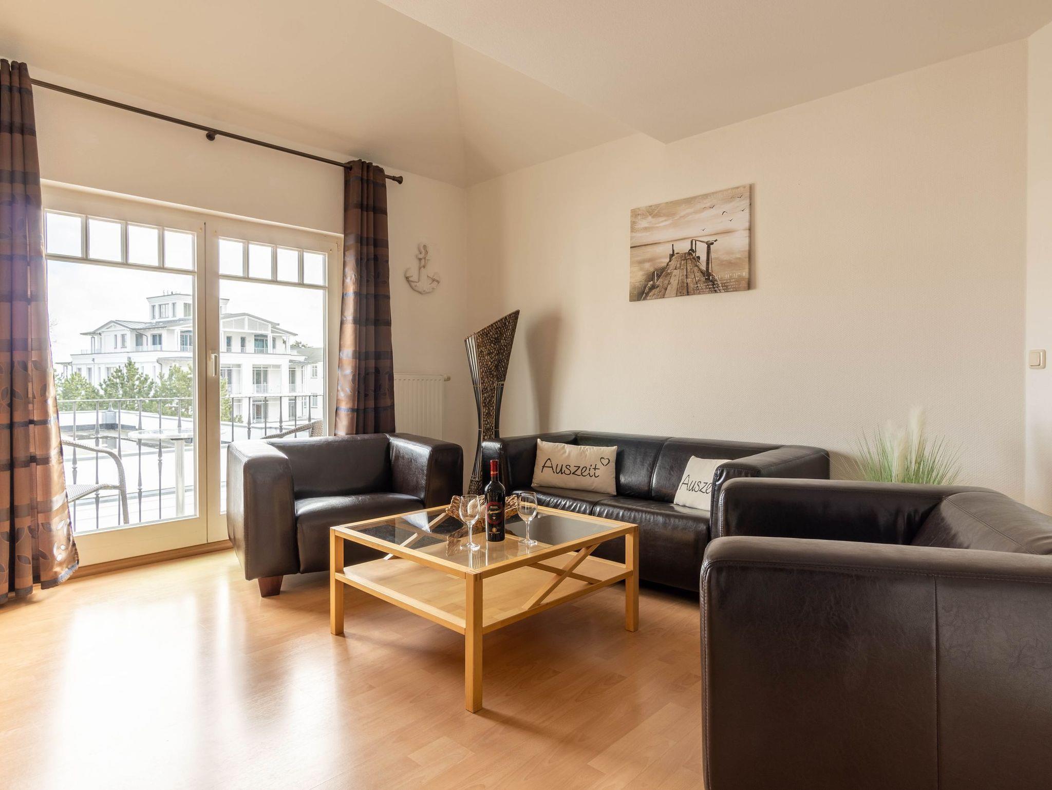 Der modern und gemütlich eingerichtete Wohnbereich lädt zum entspannen ein. Von hier kommen Sie zum Balkon, zu den Schlafzimmern und zur Küche. Der Balkon ist mit Blickrichtung zur Ostsee ausgerichtet.