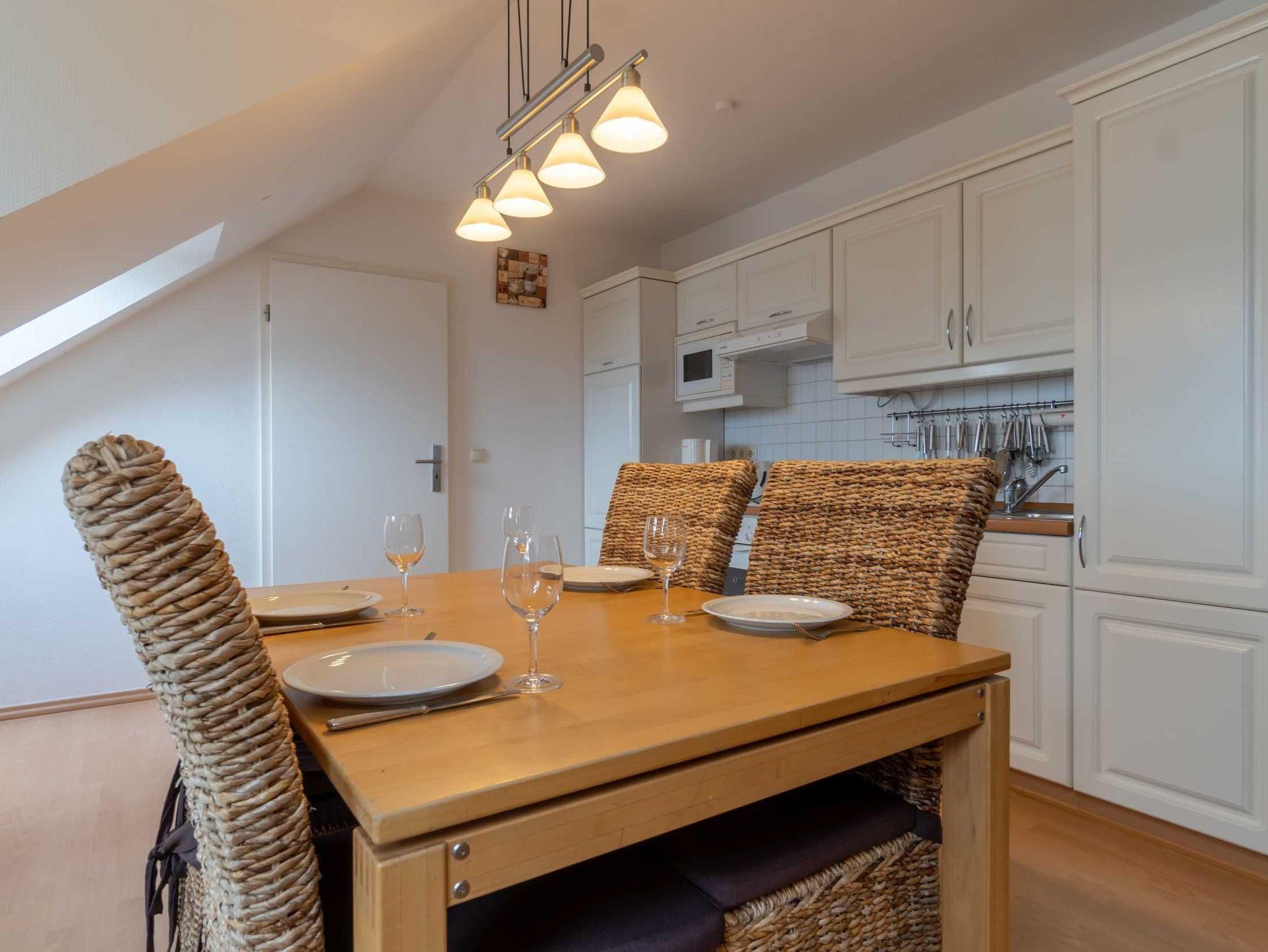 Die Ferienwohnung für 4 Personen im 2.OG besteht aus einem Wohnraum, separater Küche, 2 Schlafzimmern, Duschbad und einem möblierten Balkon. Das Apartment ist ca. 65 qm groß.