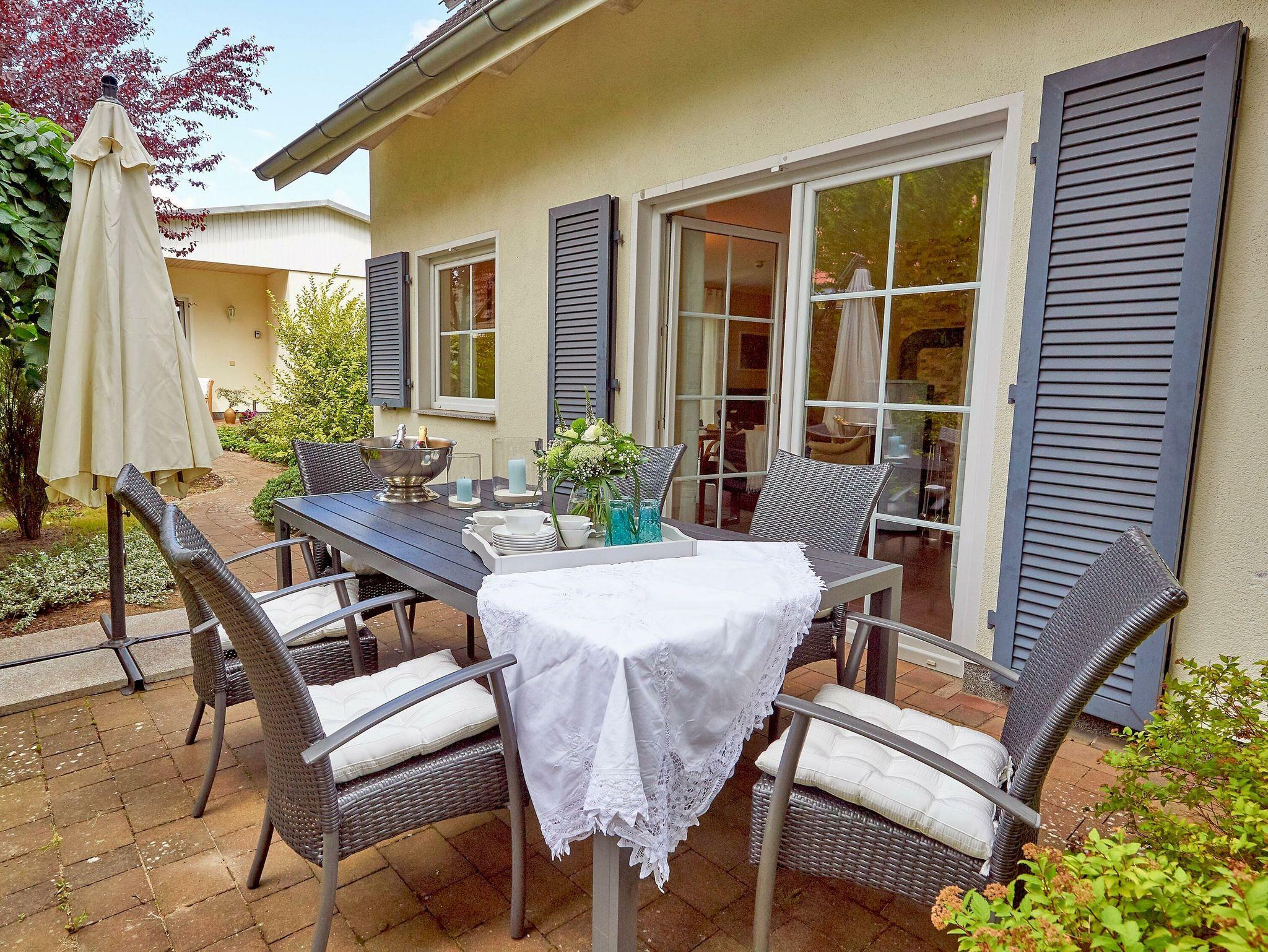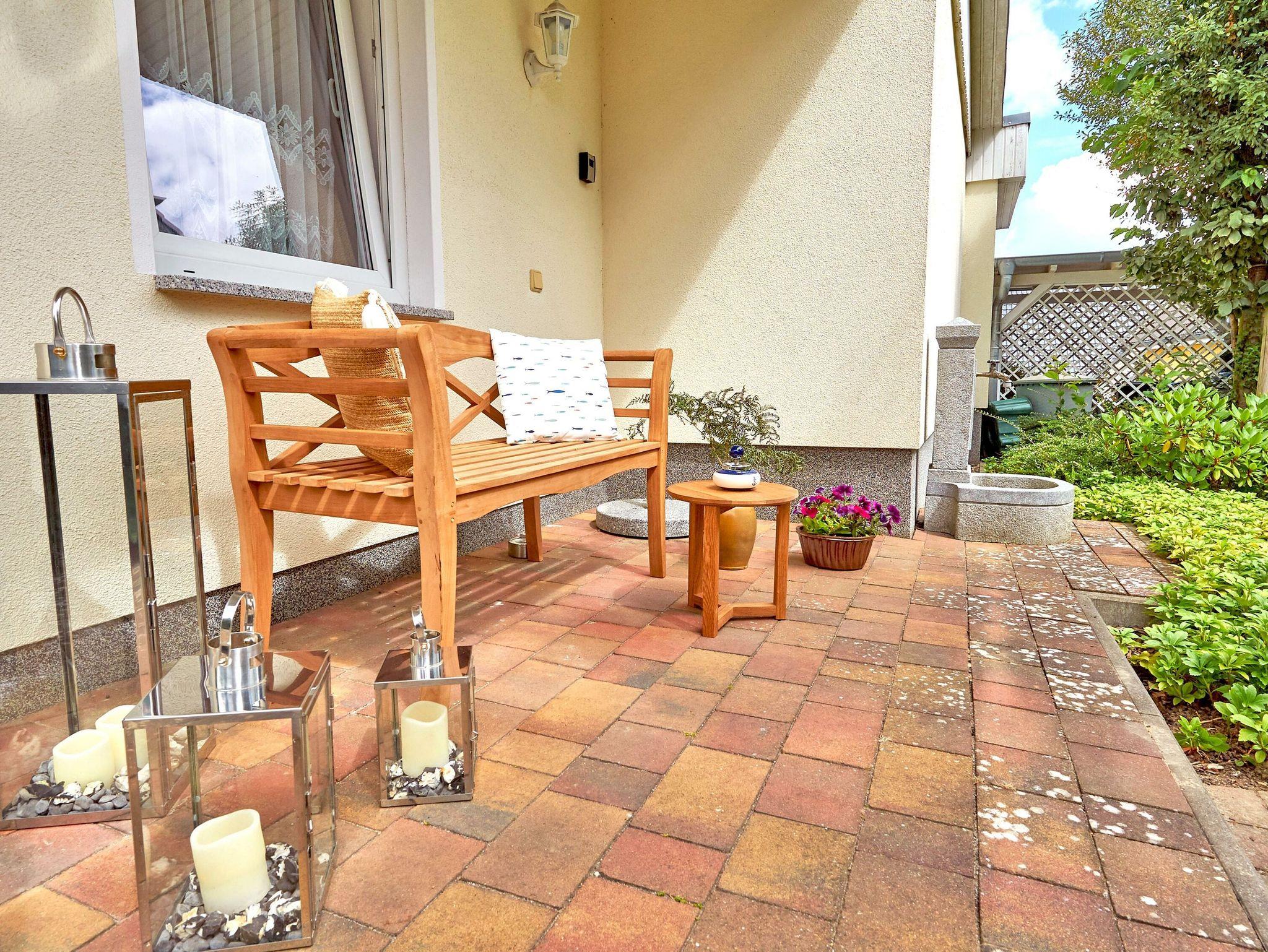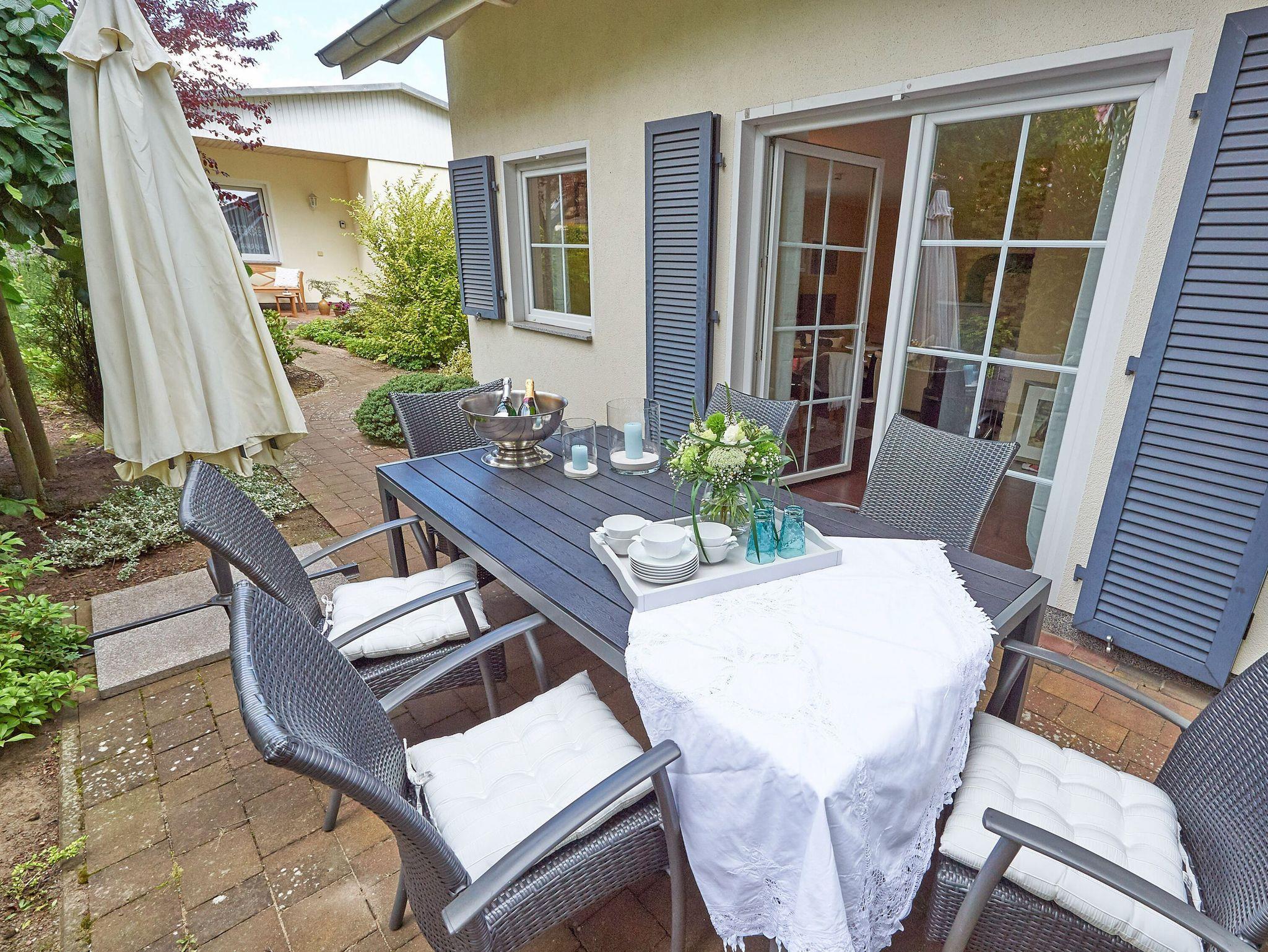 Mehrere Terrassen direkt am Haus bieten Ihnen die Gelegenheit, je nach Stand der Sonne draußen zu sitzen. Die passenden Terrassenmöbel, ein Elektrogrill und sogar ein Strandkorb zum Einkuscheln sind vorhanden. Ein Spielplatz mit Wikingerschiff für Kinder befindet sich direkt im Garten. Die Balkon- bzw. Terrassenmöbel stehen saisonal - in der Regel von Mai bis Ende September - zur Verfügung.