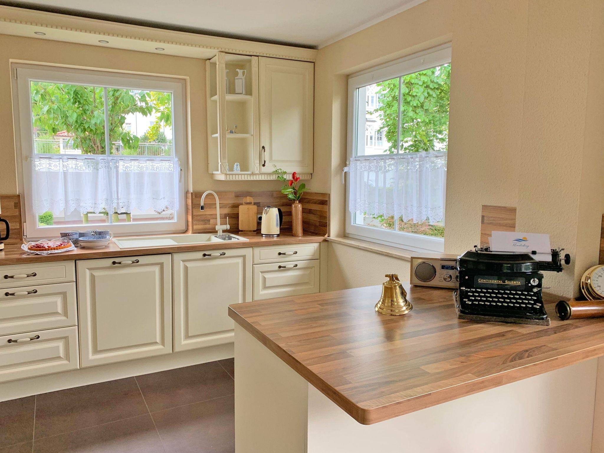 Die Einbauküche Ihres Urlaubsdomizils sieht nicht nur chic und modern aus, sondern ist auch überaus komfortabel ausgestattet. Sie finden hier u.a. einen 4-Platten-Ceranherd mit Backofen, eine Mikrowelle, einen Geschirrspüler, einen Kühlschrank mit Gefrierfach sowie eine Kaffeespezialitätenmaschine inkl. Erstbefüllung mit Kaffeebohnen, einen Wasserkocher und einen Toaster. Besteck, Geschirr, Gläser, Pfannen, Töpfe und weiteres Kleininventar sind natürlich ebenfalls reichhaltig vorhanden. So können Sie Ihren Kochkünsten freien Lauf lassen, wenn Sie nicht gerade unterwegs in einem der vielen guten Restaurants der Insel essen gehen.