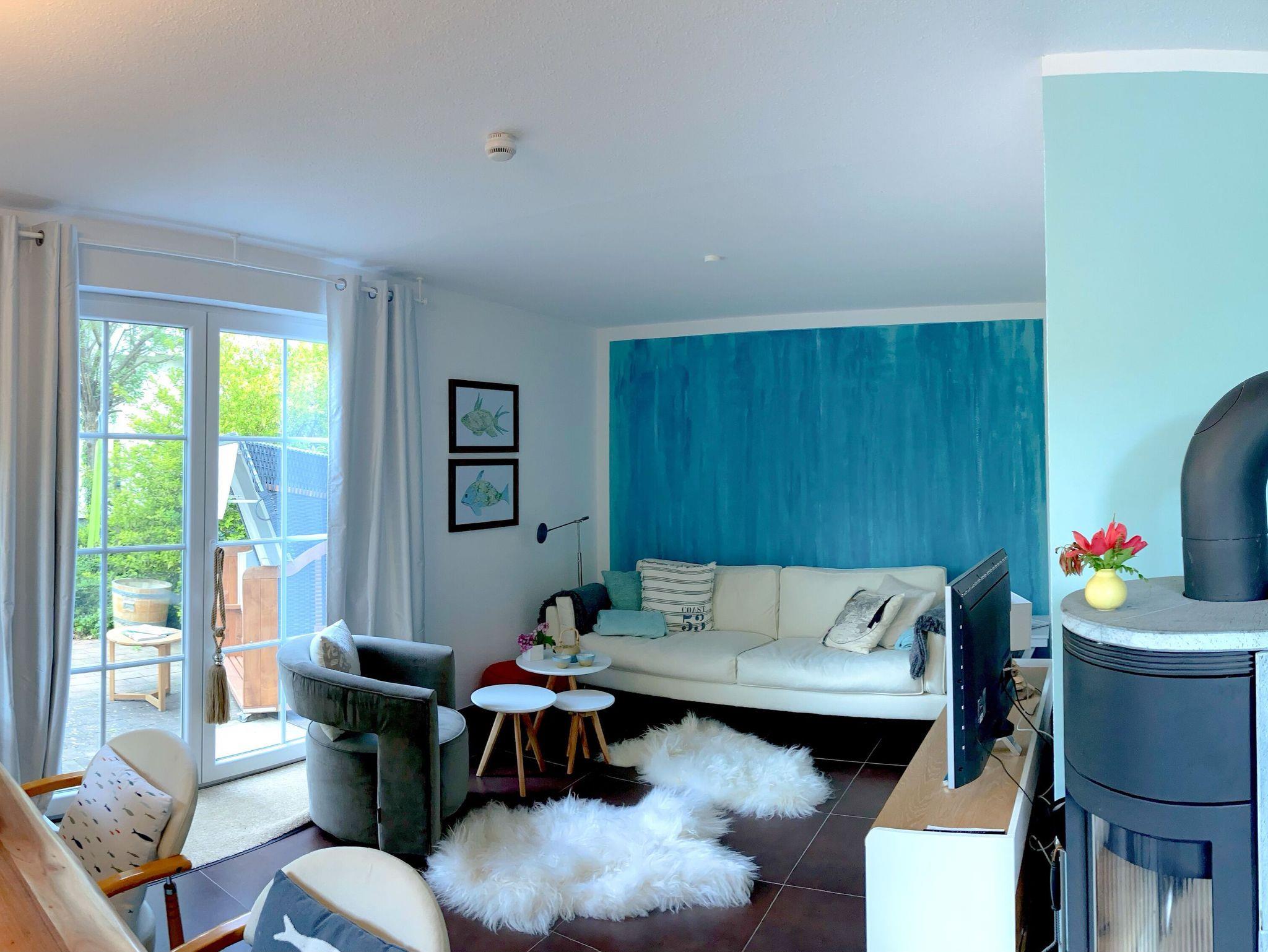 Der Kaminofen im großzügigen Wohn- und Esszimmer, das sich im Erdgeschoss des Hauses befindet, ist ein besonderer Trumpf für die romantischen Momente oder wenn man nach einem erfrischenden Strandspaziergang im Herbst und Winter wieder zurück ins Ferienhaus kommt. Gleich daneben bietet ein großer Esstisch aus Echtholz Platz für die ganze Familie. Wunderbar bequeme Couchmöbel laden vor dem großformatigen Flachbild-TV zum Entspannen ein. Hier lässt es sich ganz wunderbar schmökern, ein Gläschen Wein genießen oder im Internet surfen. W-LAN ist selbstverständlich kostenfrei verfügbar.