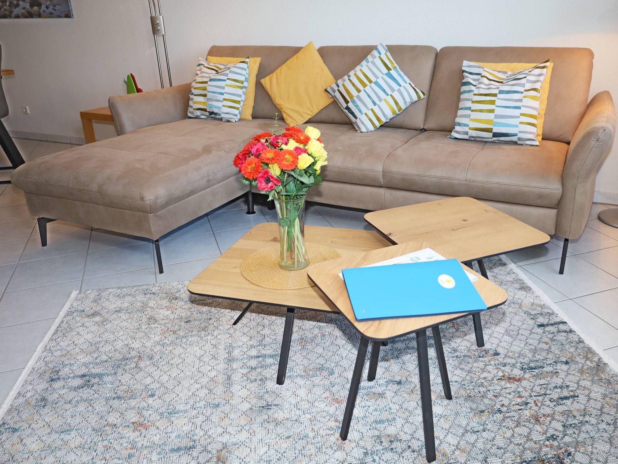 Der großzügige Wohnbereich mit einer Essecke sorgt für ein gemütliches Ambiente. Ein Sofa mit Schlaffunktion (Liegefläche 135 cm x 200 cm) bietet zusätzlichen Komfort und lädt zu entspannten Abenden ein. Für Ihre Unterhaltung stehen Ihnen ein Flachbildfernseher und kostenloses WLAN zur Verfügung.