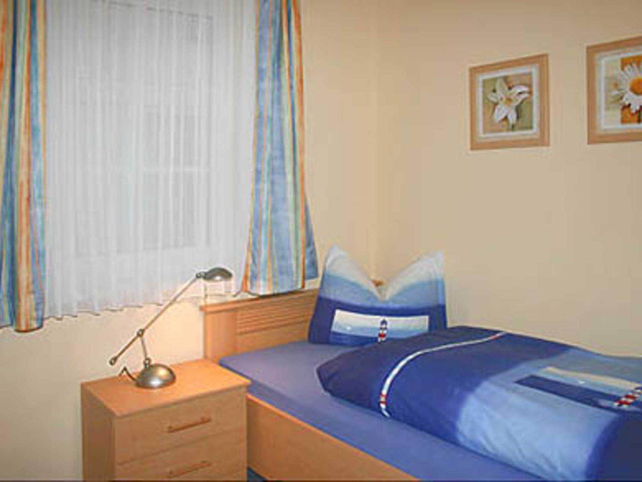 Die schöne und modern eingerichtete 3-Zimmerwohnung Nr. 11 befindet sich im Erdgeschoss des Hauses und verfügt über eine große überdachte Terrasse, die Sie zum Frühstücken nutzen können um so Energie für einen tollen Strand- oder erlebnisreichen Ausflugstag zu tanken. Die Nichtraucherwohnung verfügt über eine Größe von ca. 50 qm und ist mit bis zu 3 Personen belegbar. Die helle Wohnung verfügt über einen vorgelagerten Flur mit einer Garderobe, einem gemütlichen Wohnbereich mit Wohnküche sowie einen Essplatz, zwei Schlafzimmer und ein Tageslichtbad. Im Wohnbereich erwartet Sie eine bequeme Sitzecke. Zudem gelangen Sie vom Wohnzimmer aus auf die möblierte Terrasse. Die technische Einrichtung umfasst einen Flachbildfernseher, ein Radio mit CD-Player sowie einen gebührenfreien WLAN-Zugang. In der ausgestatteten Küchenzeile erwartet Sie unter anderem ein Backofen, Mikrowelle, 4 Plattenkochfeld, Kühlschrank, Kaffeemaschine, Toaster, Wasserkocher sowie umfangreiches Kücheninventar. Das Schlafzimmer verfügt über ein großes Doppelbett mit Nachttischen, einen Kleiderschrank mit Spiegel sowie Verdunklungsvorhänge für eine erholsame Nachtruhe. Das zweite Schlafzimmer erwartet Sie mit einem Einzelbett. Im Bad steht Ihnen eine Dusche, Waschtisch, Kosmetikspiegel und WC zur Verfügung. Für unsere kleinen Gäste stellen wir gern auf Anfrage ein Kinderreisebett sowie einen Hochstuhl bereit.