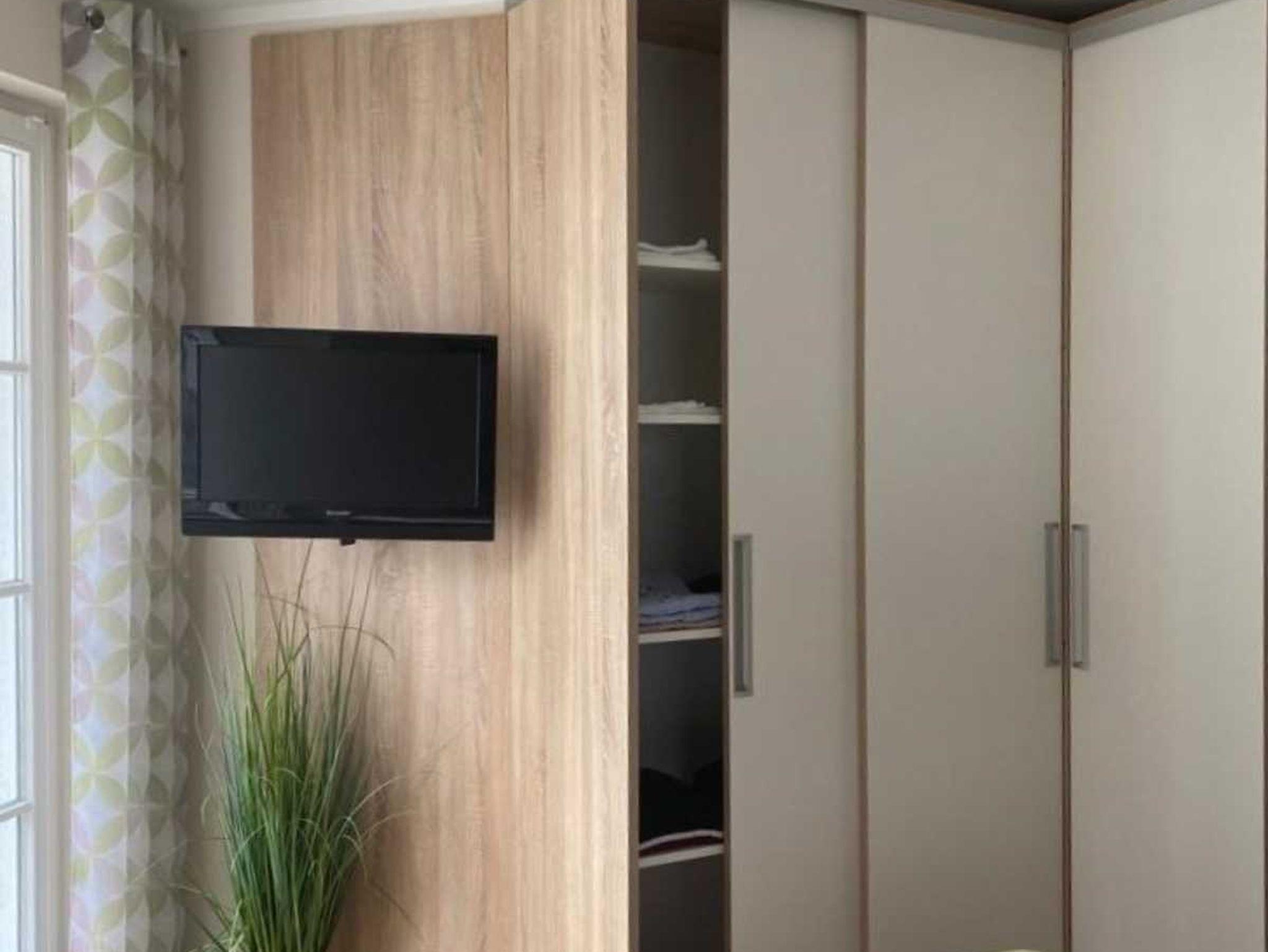 Flachbild TV in Wohn- und Schlafzimmer.