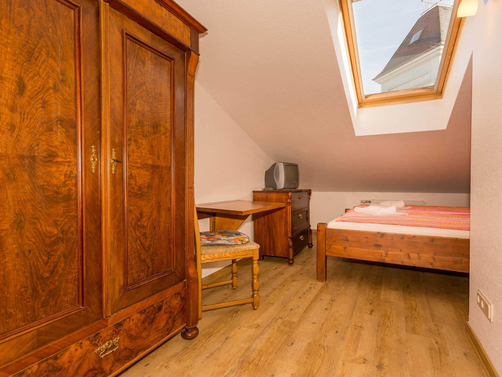 Einzelzimmer im Dachgeschoss mit kleiner Sitzecke und Kabel-TV / Flachbildschirm, Bad mit Dusche und WC, sowie Haartrockner; WLAN/Internetanschluss;;;