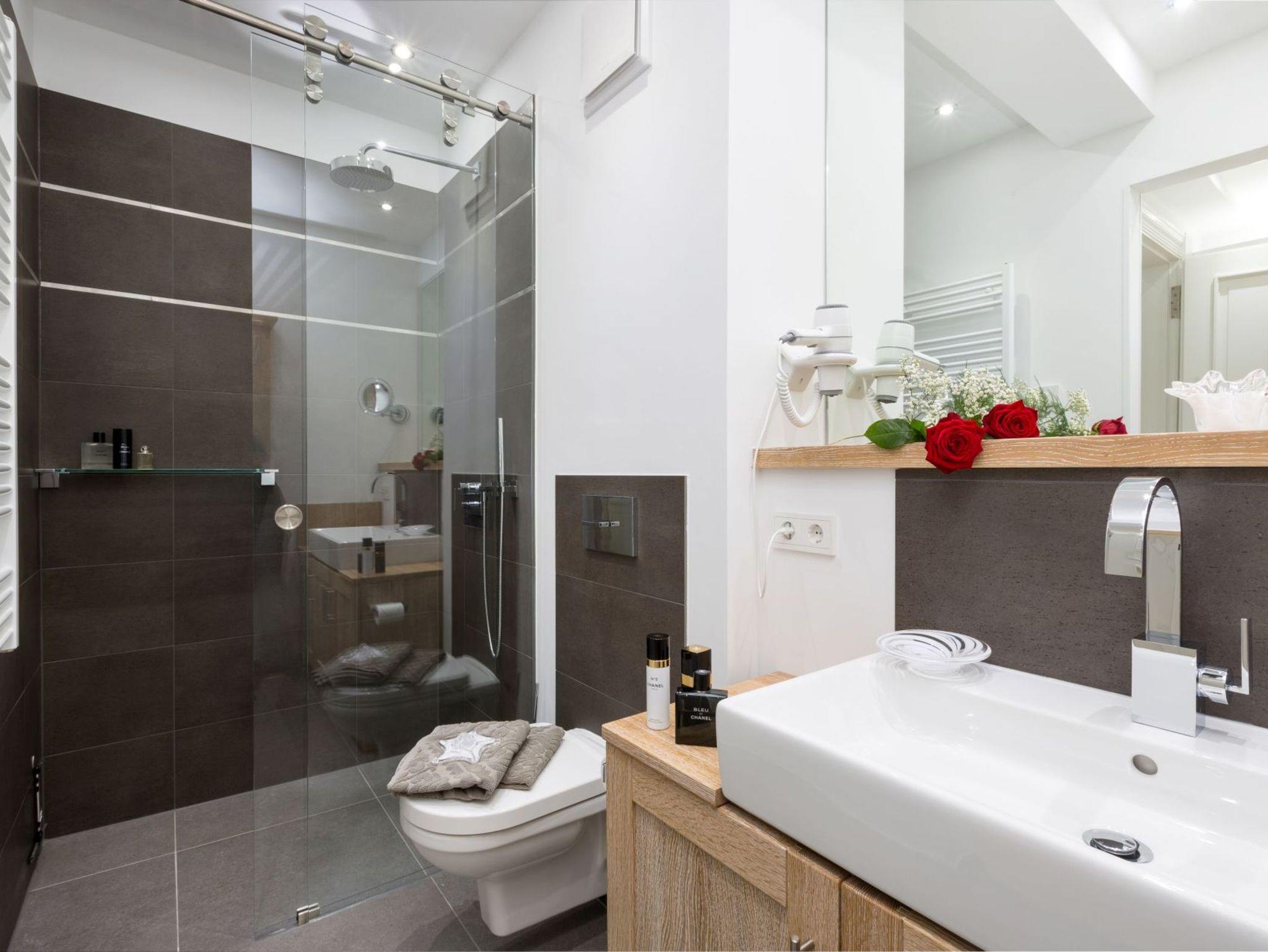 1 Bad mit schwellenlosem Duscheinstieg und Rainshower-Kopfbrause sowie Badewanne