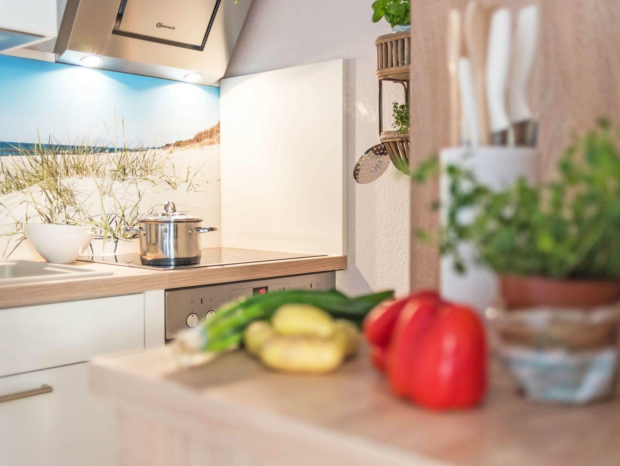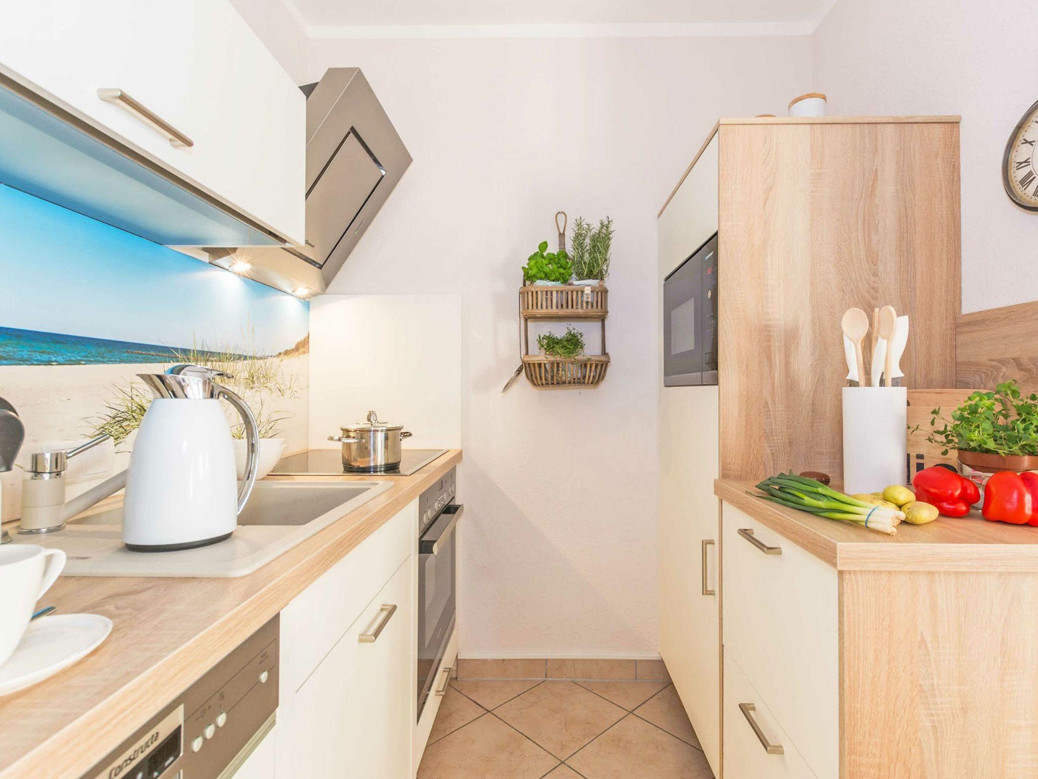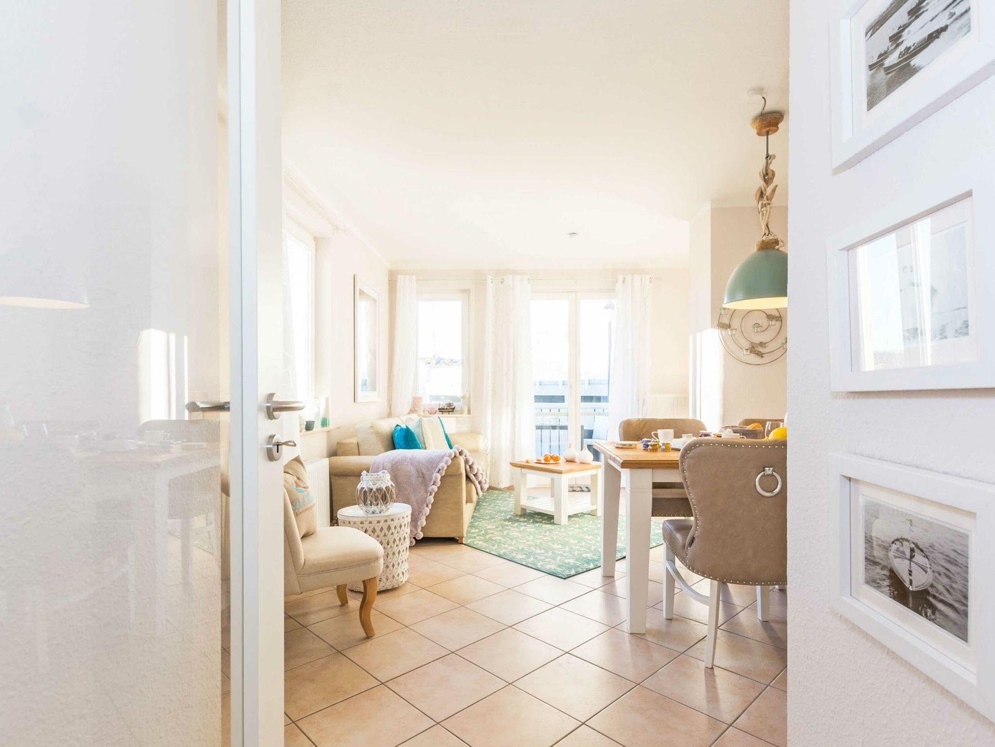 Treten Sie ein in dieses zauberhafte 2-Raum-Appartement im Erdgeschoss (Hochparterre) mit 47m². Es empfängt Sie eine lichtdurchflutete Ferienwohnung mit topmoderner Ausstattung. Genießen Sie Abend für Abend das Licht der untergehenden Sonne auf dem nach Südwesten ausgerichteten Balkon.