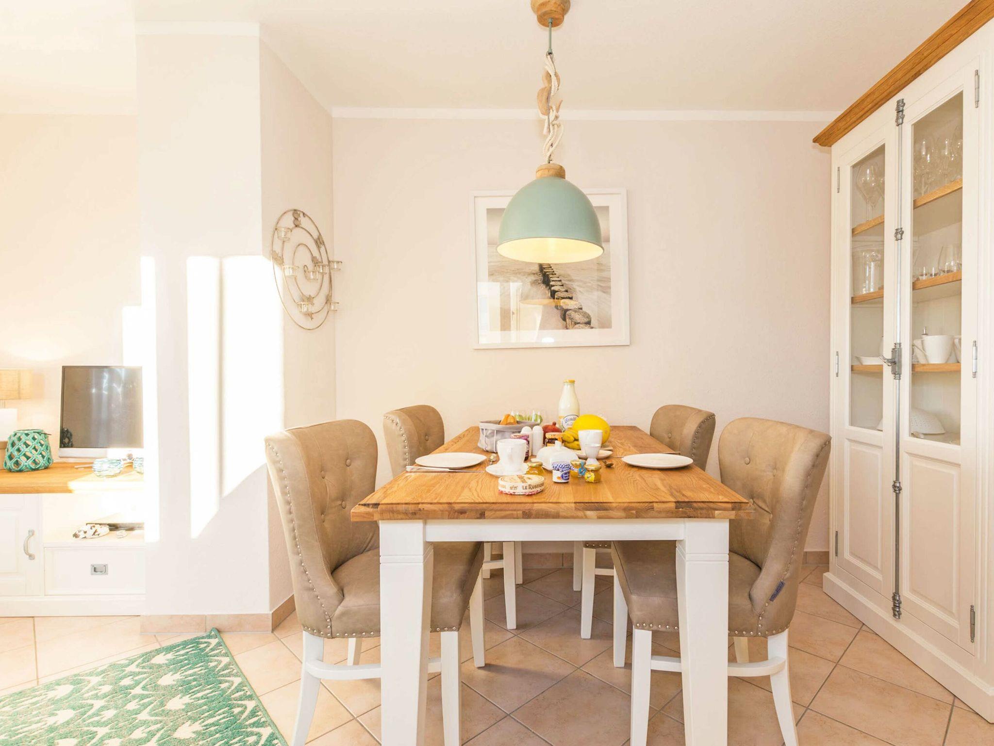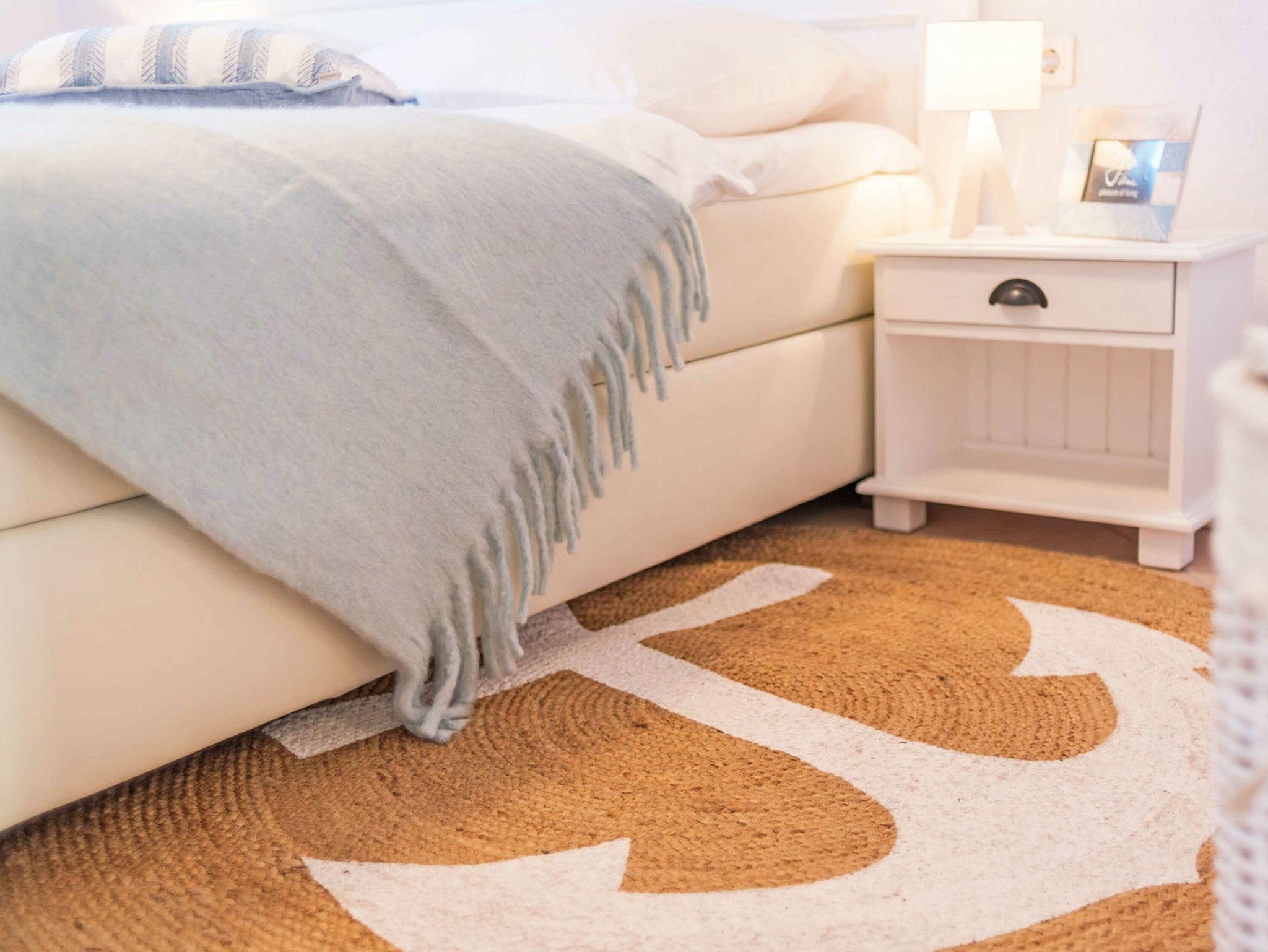 Weißes Flair und Naturholz heißen Sie in den geschmackvoll möblierten Zimmern willkommen. Der gemütliche Wohn-, Küchen- und Essbereich umfasst: