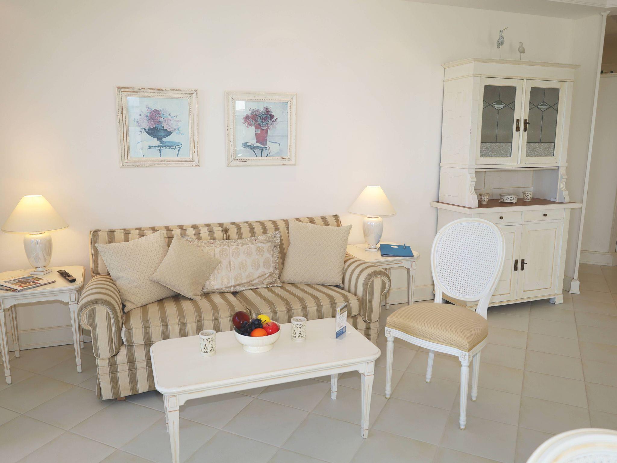 Das 3-Raum-Apartment befindet sich im 1. Obergeschoss und ist für bis zu 4 Personen geeignet. Das Apartment verfügt über einen Balkon mit frontalem Meerblick und einen Balkon mit seitlichen Meerblick.