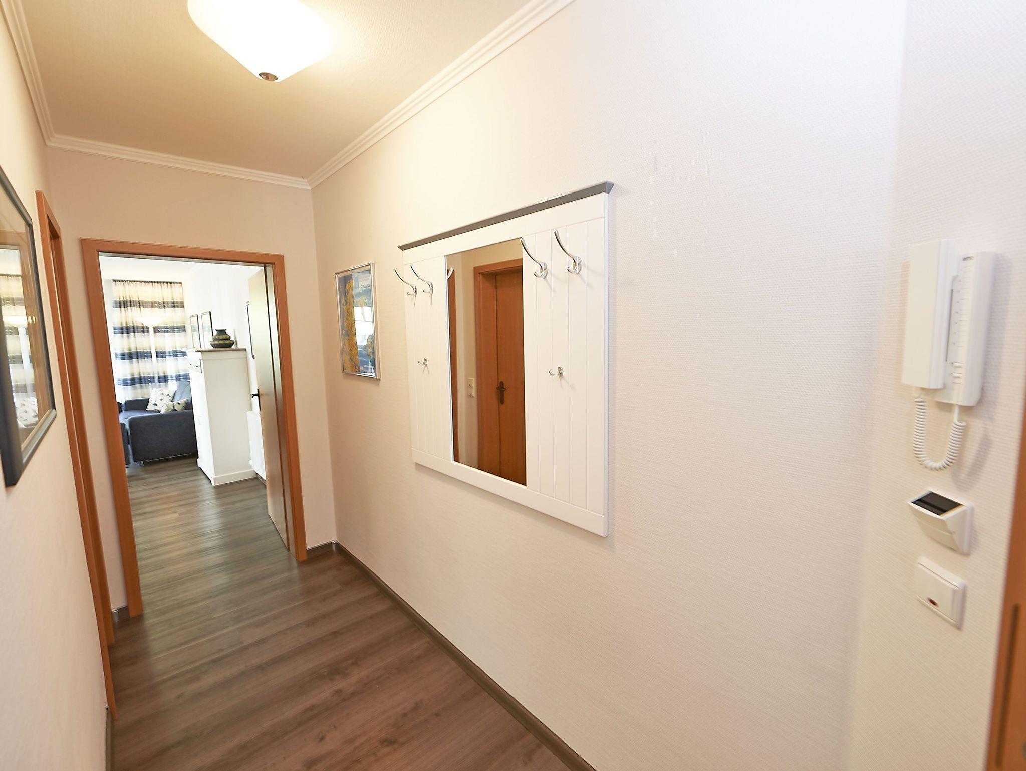 Diese ca. 62 m² große Ferienwohnung im Erdgeschoss ist im modernen Landhausstil mit maritimen Flair ausgestattet. Durch die Lage an der Giebelseite des Hauses verfügt die Wohnung durch zusätzliche Fenster über mehr Licht. Die gesamte Nichtraucher-Wohnung ist hauptsächlich mit Echtholzmöbeln sowie mit Vinylboden in Holzbrettoptik ausgestattet. Alle Fenster verfügen über ein Fliegengitter.