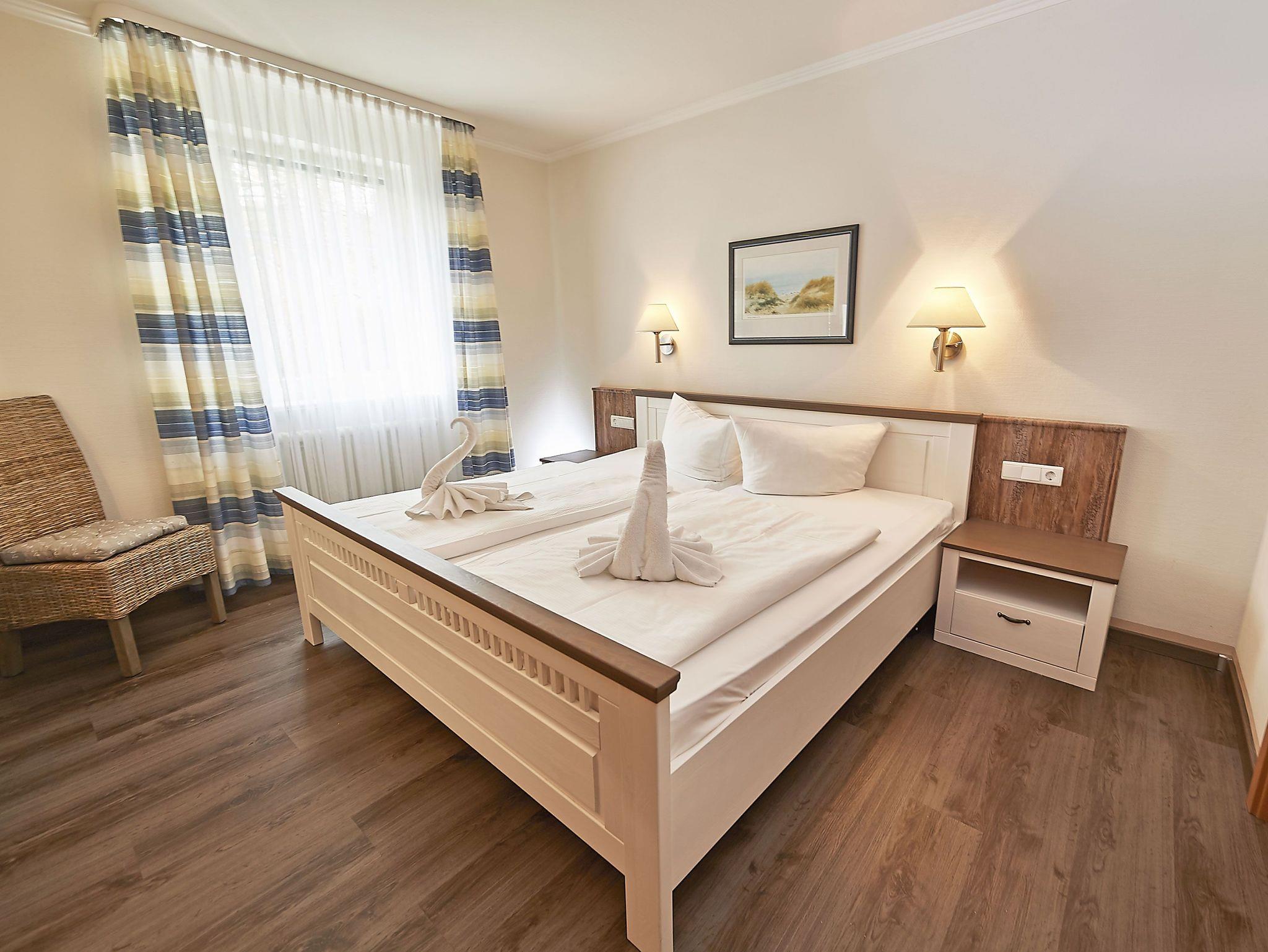 Das Schlafzimmer mit separatem Ankleidezimmer bietet Ihnen ein gemütliches Doppelbett (1,80m x 2,00 m).