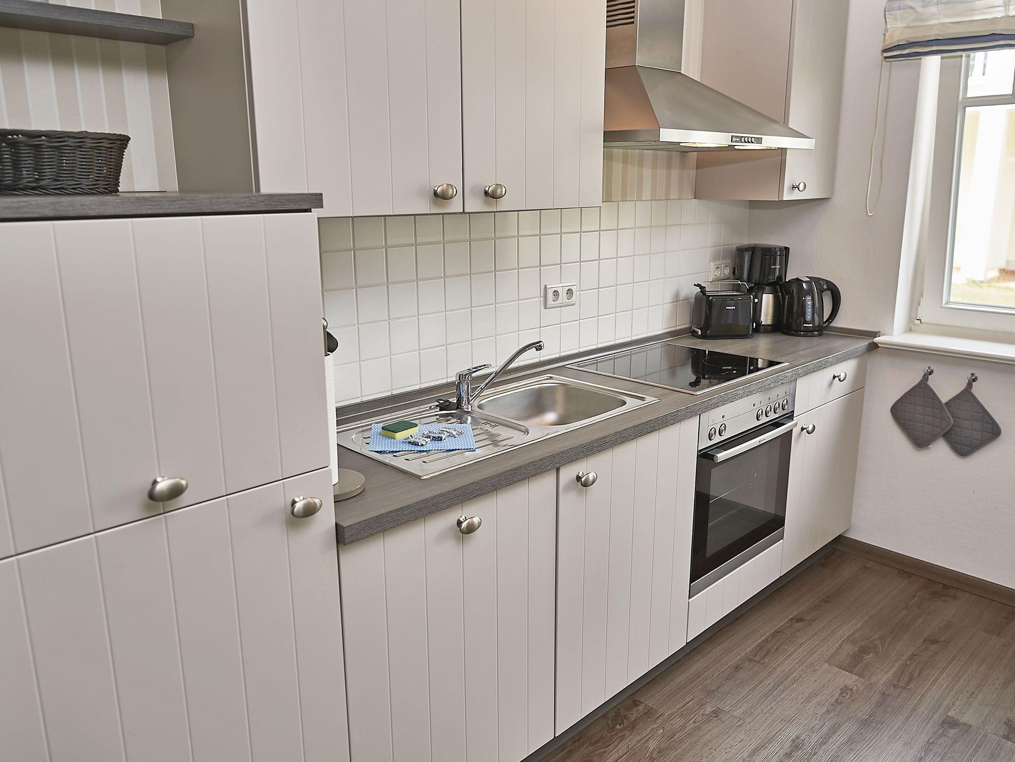 Im Wohnbereich stehen ein bequemes Schlafsofa (1,80 x 2,00 m), ein Flachbildfernseher, eine Stereo-Anlage mit CD-Player sowie ein DVD-Player zur Verfügung. Die in den Wohnbereich integrierte Nolte-Küche ist hochwertig ausgestattet, u.a. mit einem Kühlschrank, Backofen, 4-Zonen-Cerankochfeld, Mikrowelle und einem Geschirrspüler.