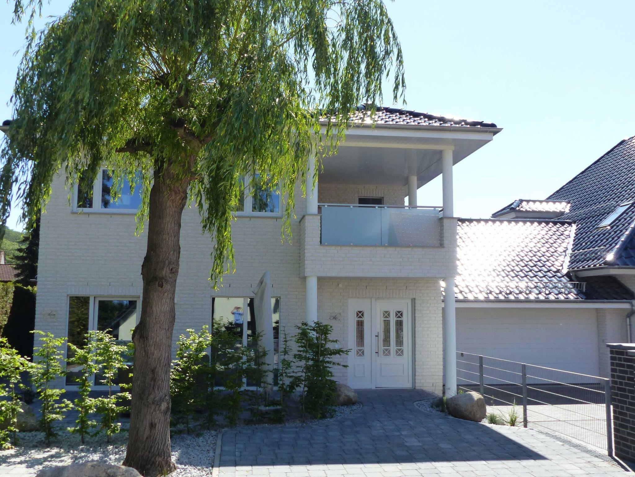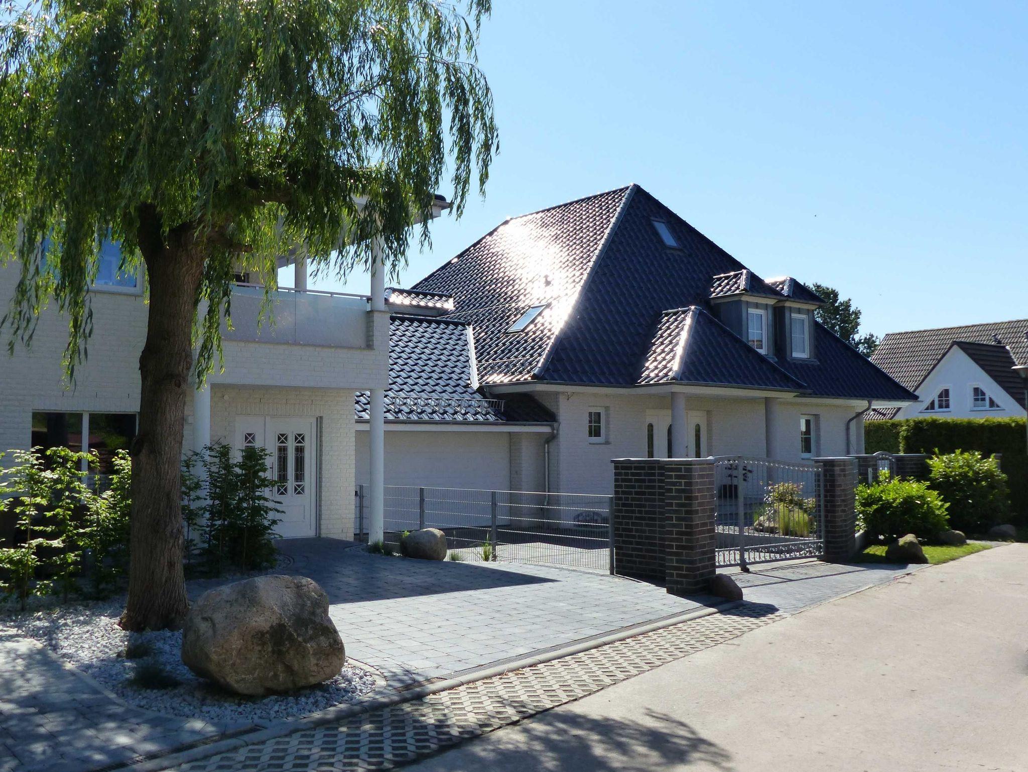 Die Fassade mit den weißen Klinkersteinen unterstreicht die exklusive Bauweise.