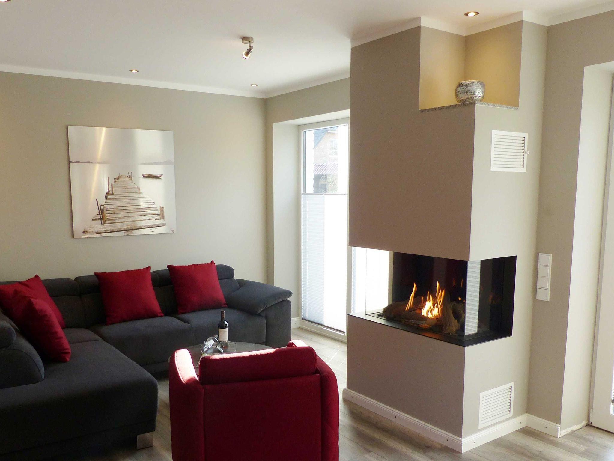 Von dort aus gelangen Sie in den harmonisch gestalteten Wohn- und Essbereich. Eine gemütliche Wohnlandschaft, ein Smart-TV und ein moderner Gaskamin laden zu kuschligen und erholsamen Abenden ein.