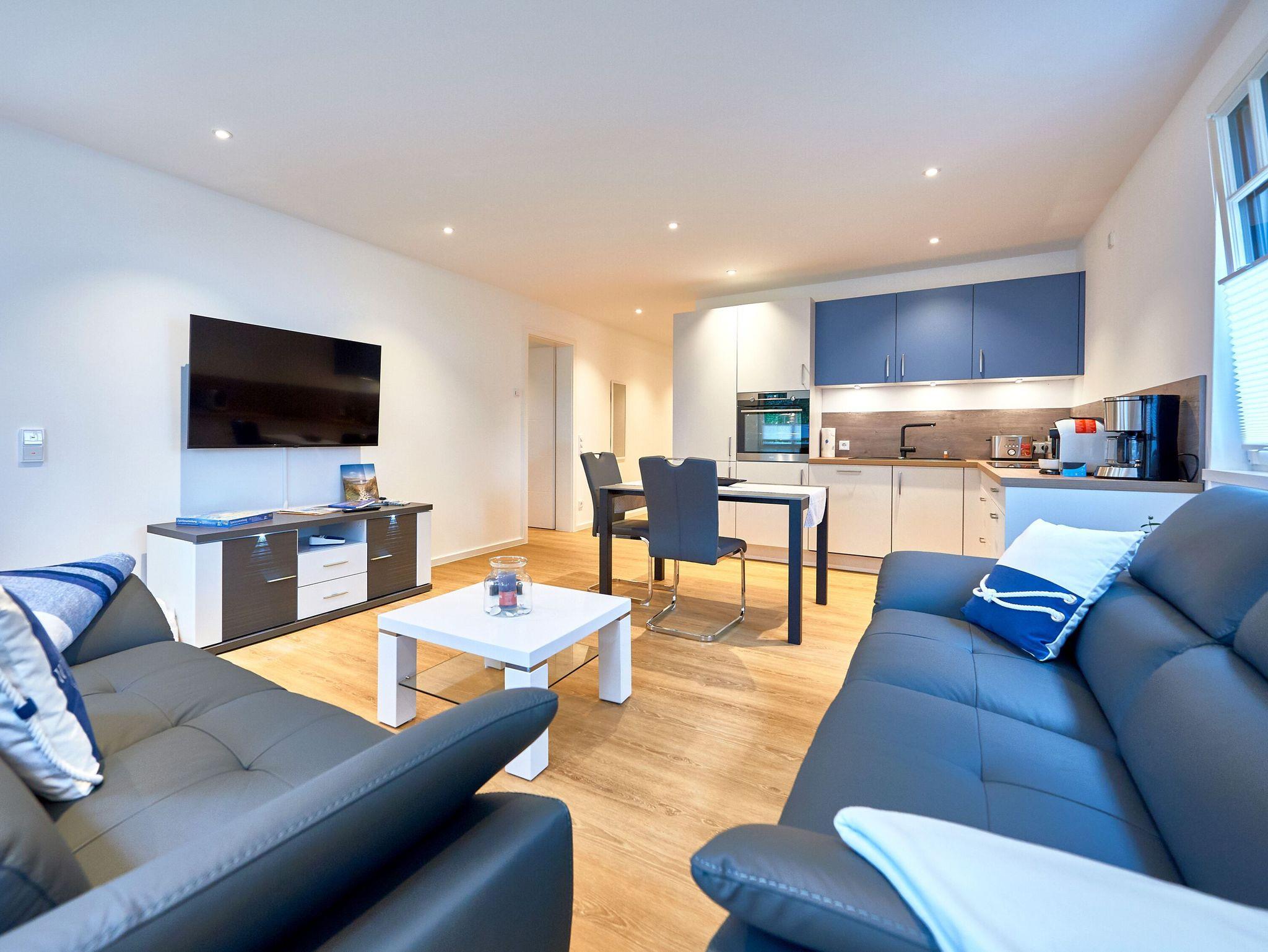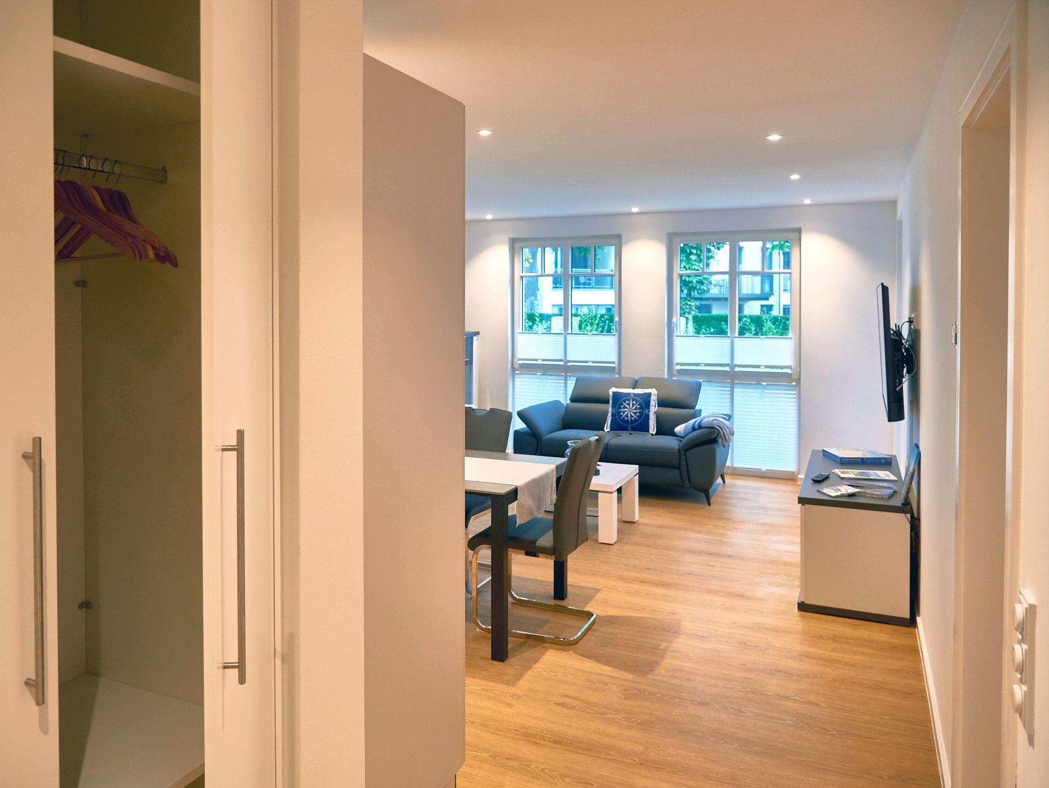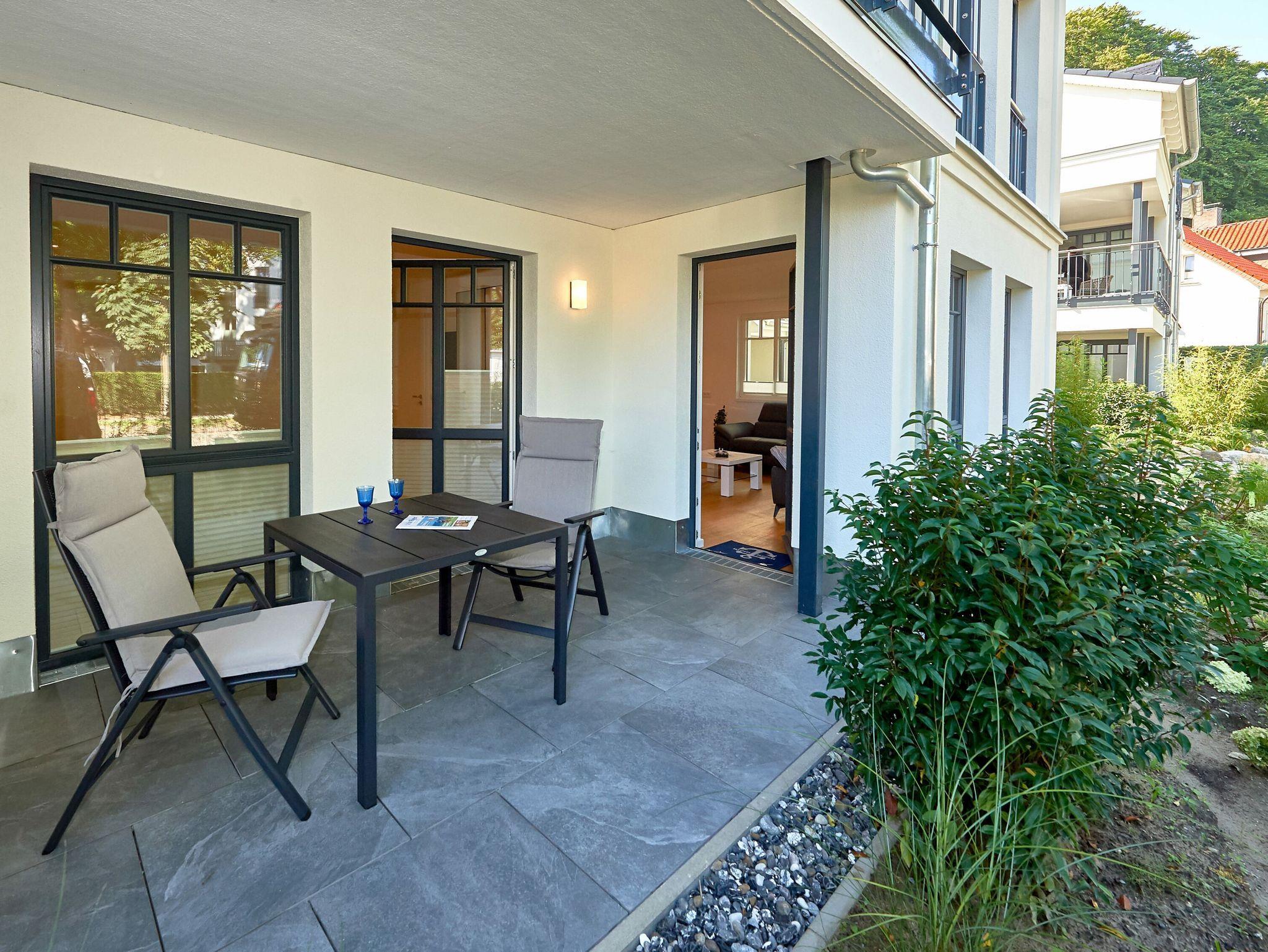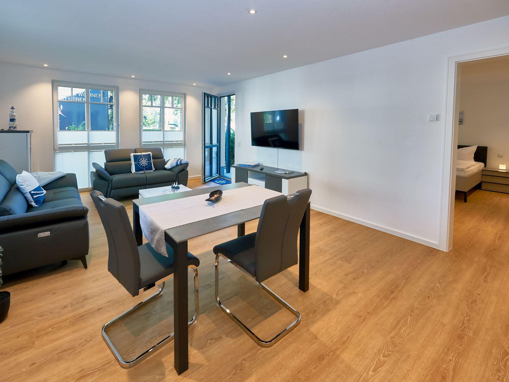 Herzlich willkommen in der Wohnung 2 Wellenspiel! Dieses zauberhafte 2-Raum-Appartement mit wind- und wettergeschützter Terrasse zur Abendsonne begrüßt Sie im Erdgeschoss der Villa Beatrice. Ausgelegt für zwei Personen und dazu rauch- und haustierfrei, eröffnet sich Ihnen auf gut 57 Quadratmetern Wohnfläche ein herrlich geräumiges Zuhause auf Zeit, in dem Sie sich garantiert wohlfühlen werden.