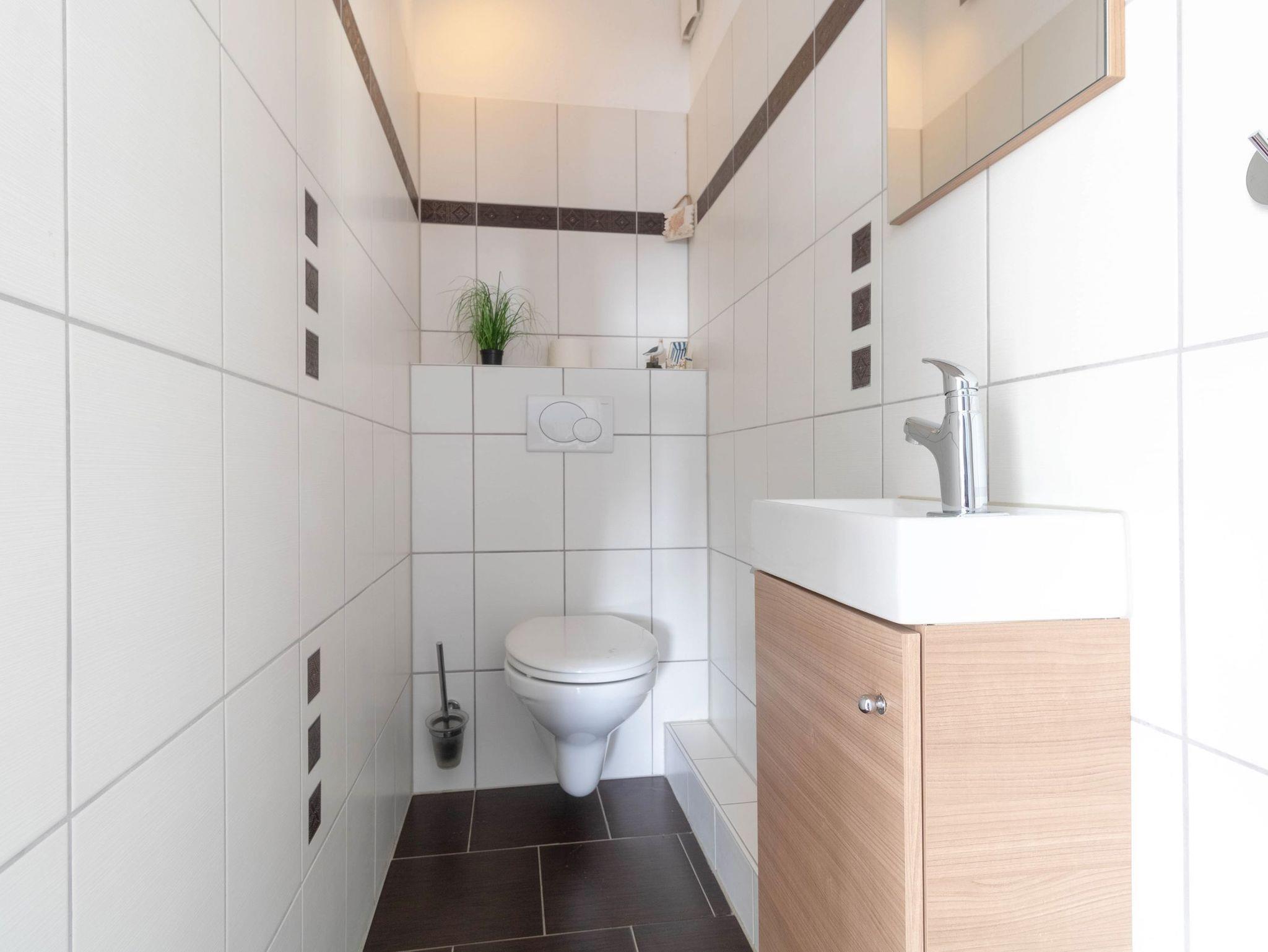 Die Ferienwohnung verfügt über ein Duschbad sowie ein extra Gäste-WC .