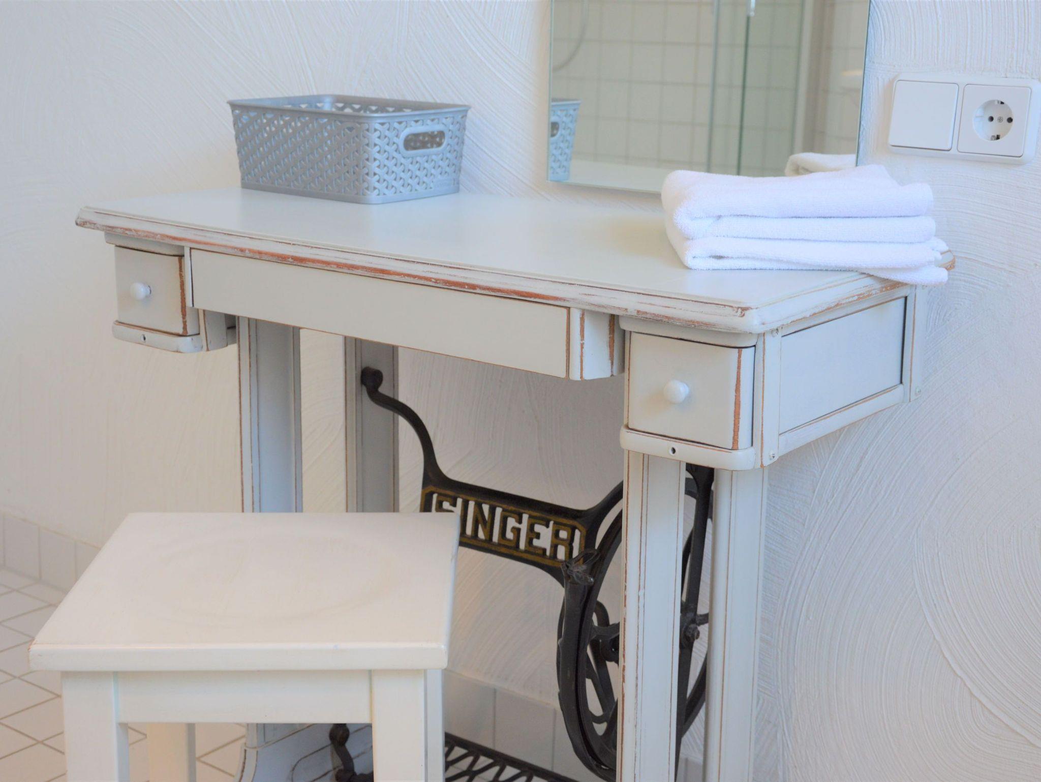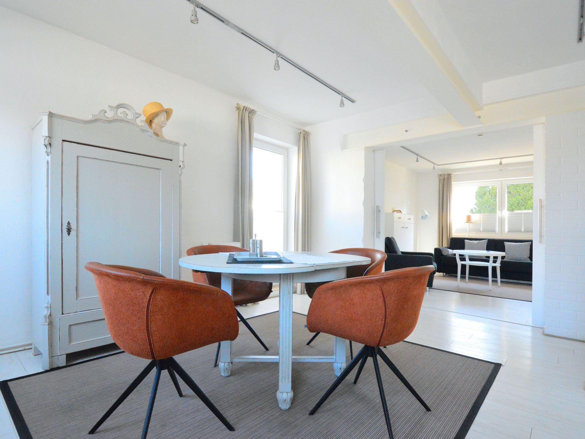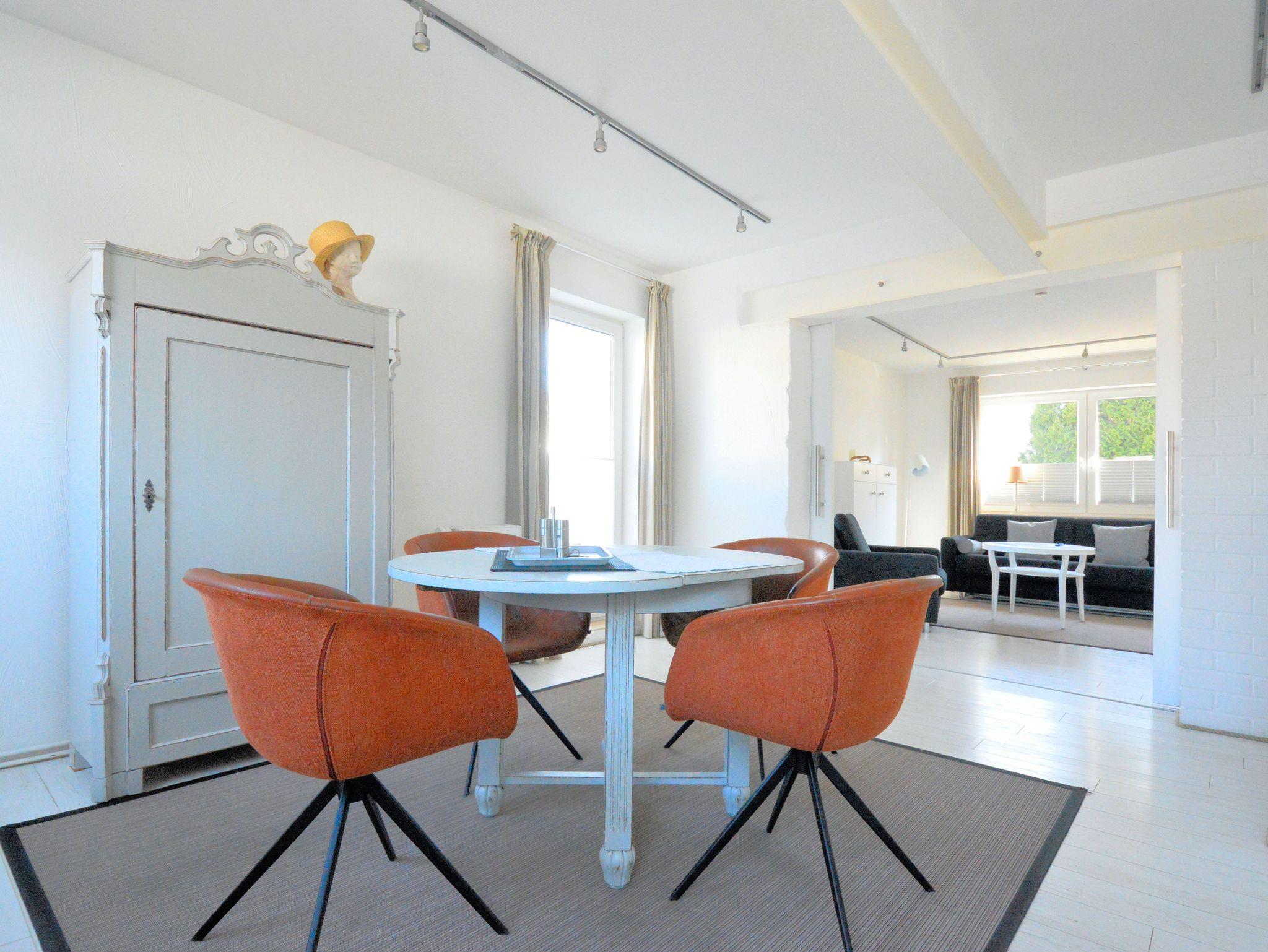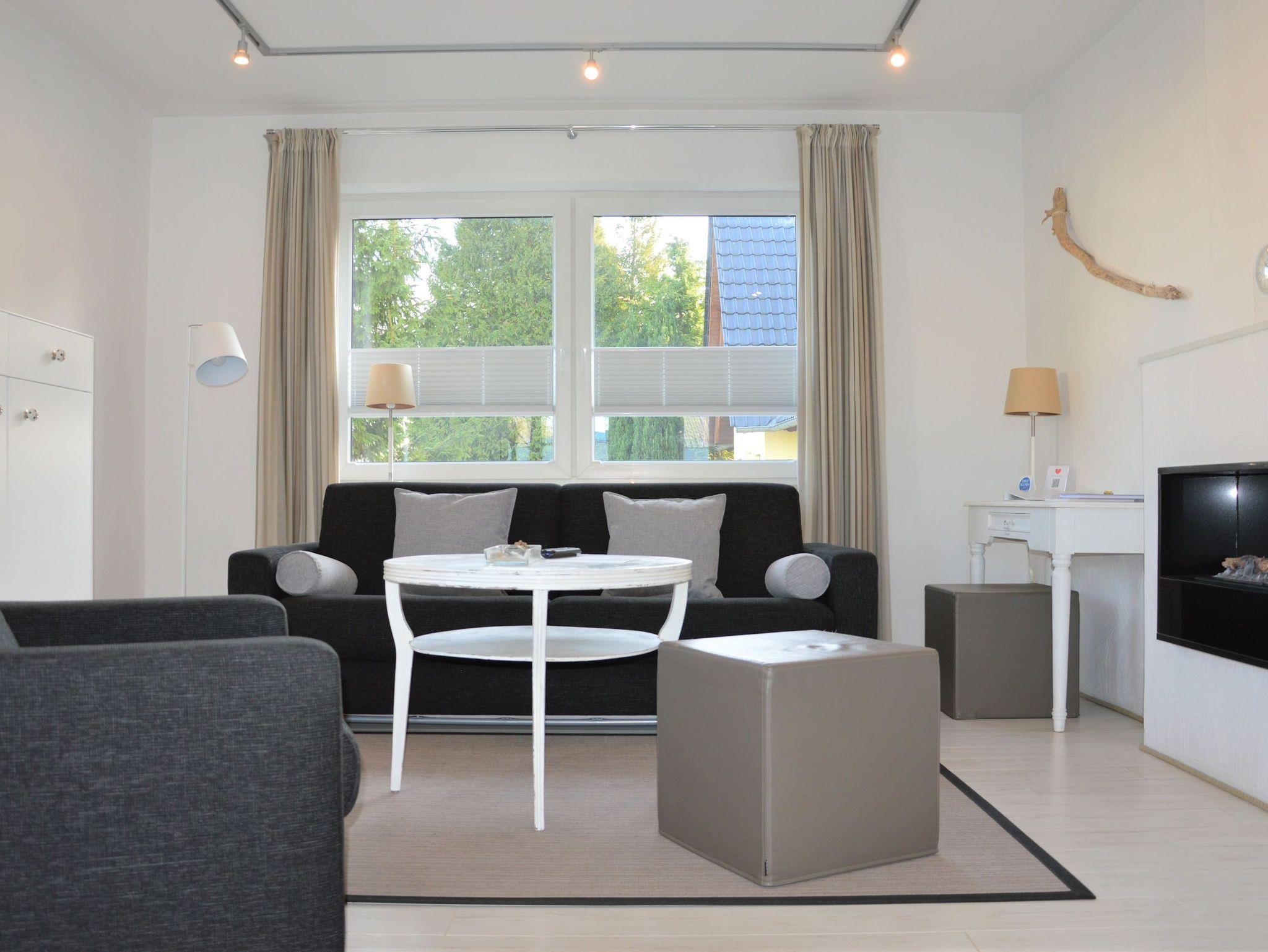 Diese Ferienwohnung (Hochparterre) mit 60m² befindet sich in der Villa Herbstwind nahe des Schmachter Sees in Binz. Unsere Nummer 1 ist ein helles, freundliches Appartement, lässig elegant eingerichtet, dezente Dekorationen machen neugierig auf den nächsten Strandbesuch oder einen Spaziergang am See. Wer es modern liebt, aber auch eine kleine Vorliebe für antike Stücke in sich trägt, wird hier gerne seinen Urlaub verbringen. Der Wohnbereich ist getrennt von der großen Wohnküche mit Küchenzeile. Wohnzimmer, Wohnküche und Schlafzimmer sind sehr elegant und gemütlich möbliert. Auf dem Schlafsofa im Wohnzimmer ist eine Aufbettung für eine Person möglich. Der Elektro-Kamin (Dekokamin, wärmt nicht) sorgt für eine gemütliche Atmosphäre. Freuen Sie sich auch auf einen Fernseher und eine Musikanlage im Apartment! Ihr Schlafzimmer ist mit einem Doppelbett ausgestattet, das eine großzügige Liegefläche von 180×200 cm bietet. Ein zweiter TV steht bereit. Abends werden Sie in der komfortablen Couchecke bei einem Glas Wein den Elektro-Kamin genießen, der mittels Wasserdampf ein täuschend echtes Flammenbild erzeugt. Die Küchenzeile ist komplett ausgestattet, 4-Platten-Cerankochfeld und Backofen, Geschirrspüler, Kühlschrank mit Gefrierfach, Mikrowelle, Kaffeefiltermaschine, Wasserkocher und Toaster. Das Bad ist mit Dusche, zwei Waschtischen, einem WC und Haartrockner ausgestattet, für die Dame gibt es einen extra Frisiertisch. Ein Balkon mit Morgensonne rundet das Ferienerlebnis ab.
