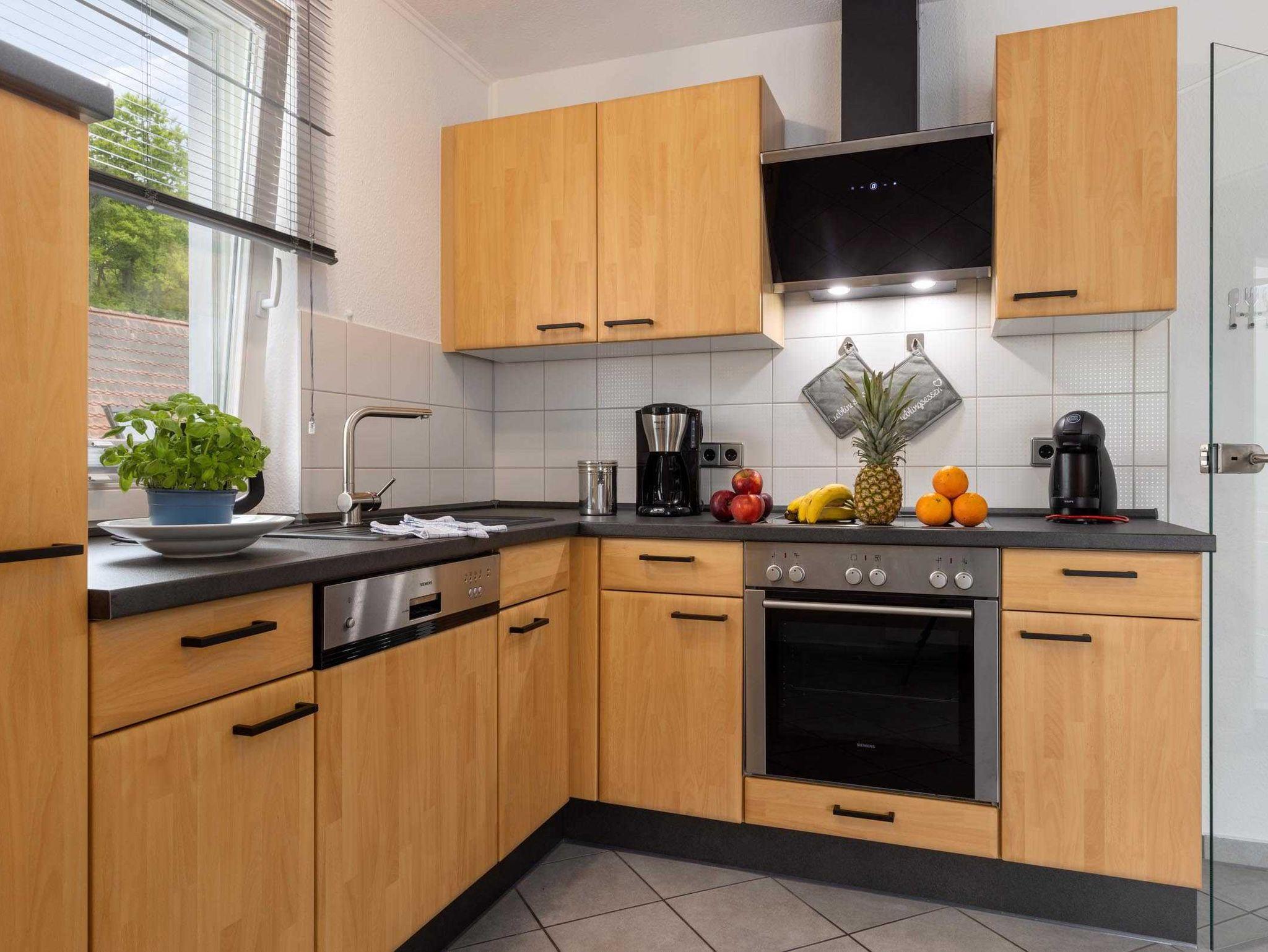 Küche mit Cerankochfeld, Mikrowelle und Geschirrspüler,