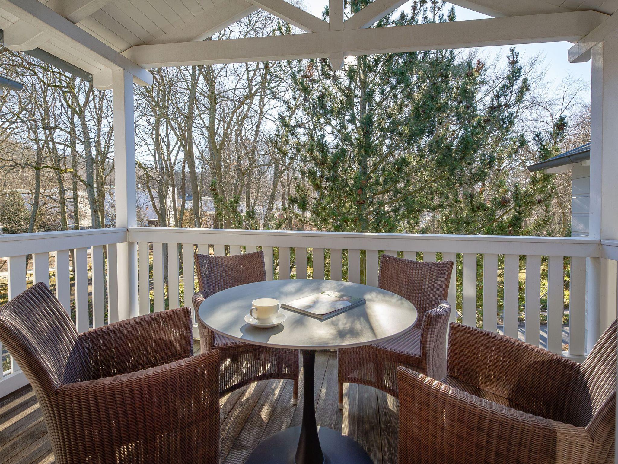 Herzstück Ihres Zuhauses auf Zeit ist das kombinierte Wohn- und Esszimmer mit integrierter Landhaus-Küche und vorgelagertem Balkon. Zur Ausstattung zählen hier u.a. ein Flachbild-TV, kostenfreies W-LAN und eine bequeme Couch. Die offene Küche ist komplett ausgestattet und verfügt u.a. über einen Ceranherd, einen Backofen, eine Geschirrspülmaschine, eine Mikrowelle, einen Kühlschrank sowie Kaffeemaschine, Wasserkocher, Toaster, Stabmixer usw. Speisen können Sie ganz nach Belieben am großen Esstisch im Wohnzimmer oder auch draußen auf dem überdachten Balkon in der frischen Ostseeluft.