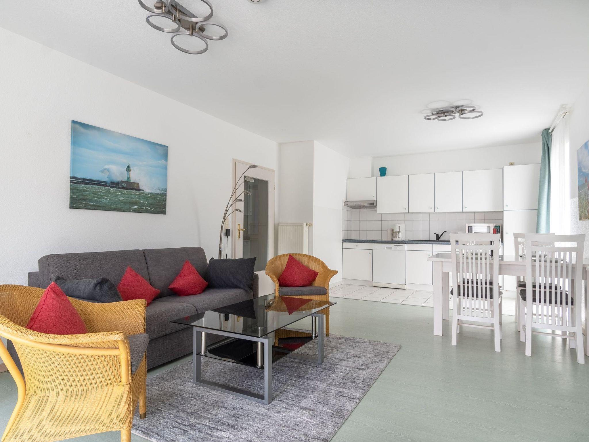 Ihr Apartment besteht aus einem Wohn-/Essbereich mit Küchenzeile, Schlafzimmer und Duschbad bietet auf 52 qm Platz für bis zu 4 Personen.
