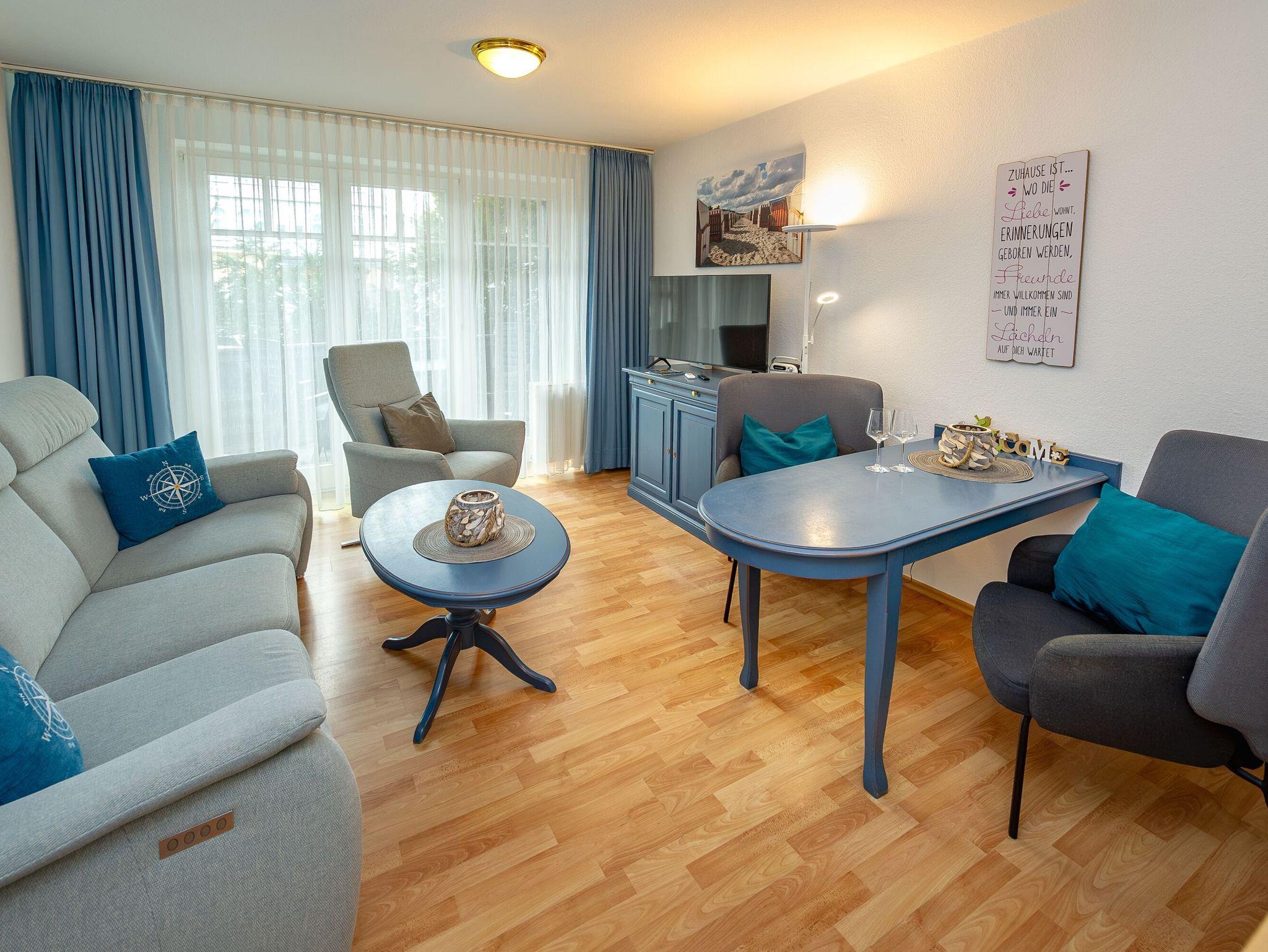 Herzlich willkommen in der Ferienwohnung Nr. 6! Dieses komfortable 2-Raum-Appartement in bester Lauflage zum Strand begrüßt Sie im Hochparterre des Appartementhauses Jahreszeiten und hat eine Wohnfläche von rund 32 m².