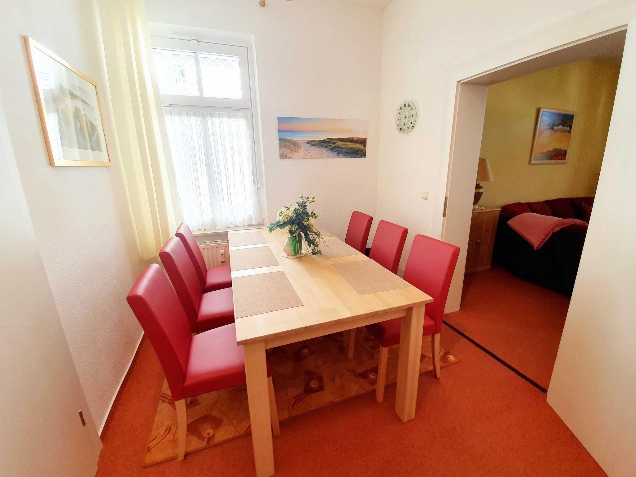 3-Raum-Ferienwohnung mit 2 Balkonen. 2 Schlafzimmer, ca. 90 qm, Du/WC und Badewanne, Nichtraucherwohnung, bis 4 Personen belegbar, Küchenecke, seperater Essplatz, gemütliches Wohnzimmer. Das erste Schlafzimmer verfügt über ein Doppelbett und ein Einzelbett und das 2. Schlafzimmer über ein Doppelbett. Das Mitbringen von Haustieren ist nicht gestattet.