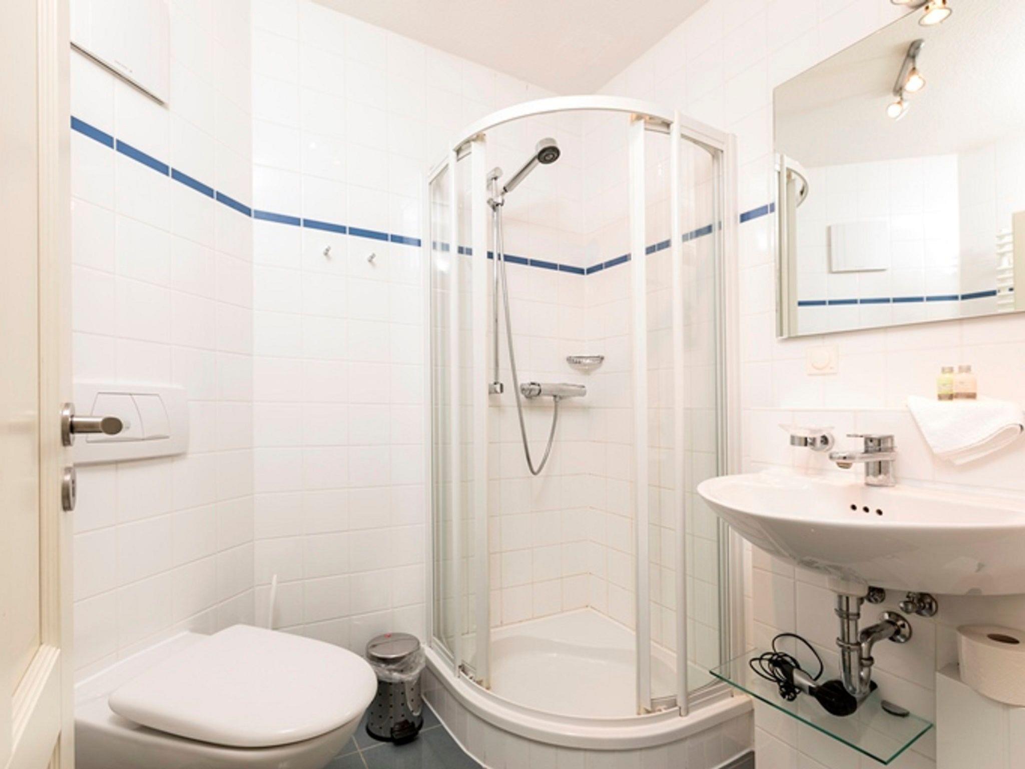 Im Schlafzimmer erwartet Sie ein komfortables Doppelbett sowie ein charmanter antiker Kleiderschrank. Das Badezimmer verfügt über eine praktische Eckdusche.