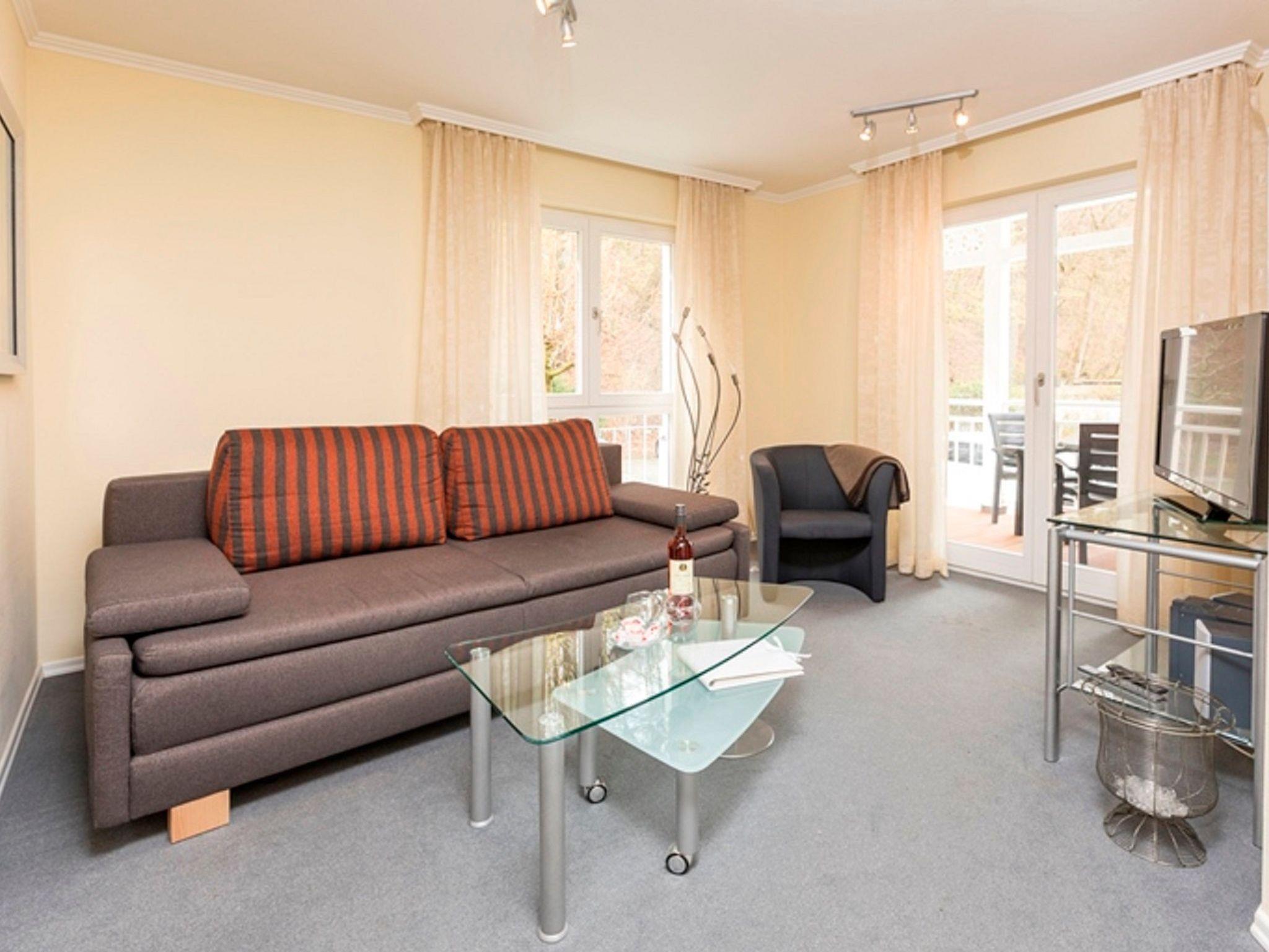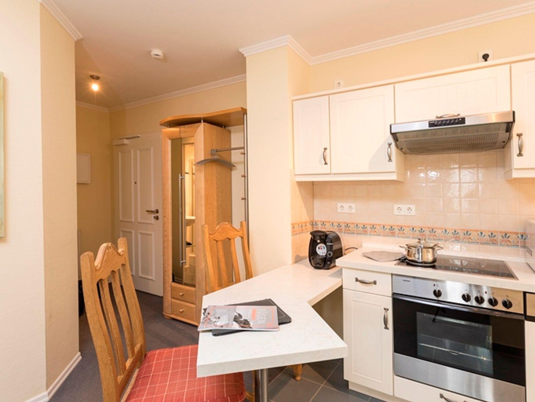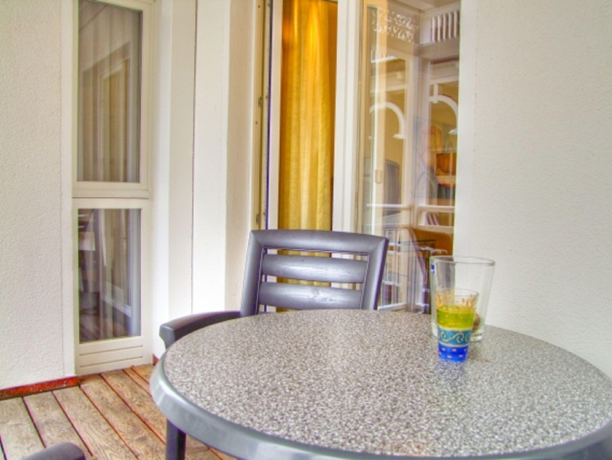 Das 2-Raum-Apartment befindet sich in der Hochpaterre und hat vom Balkon aus einen seitlichen Meerblick. Das Apartment ist für bis zu 3 Personen geeignet.