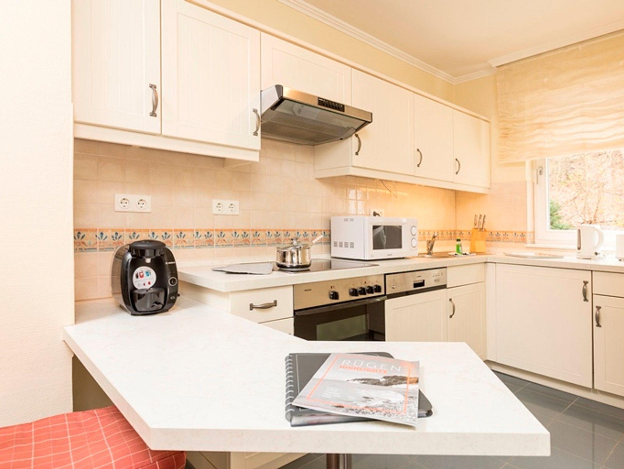 Die voll ausgestattete Küche lässt keine Wünsche offen: Cerankochfeld, Backofen, Geschirrspüler, Mikrowelle, Tassimo-Kaffeeautomat und viele weitere nützliche Geräte stehen bereit.