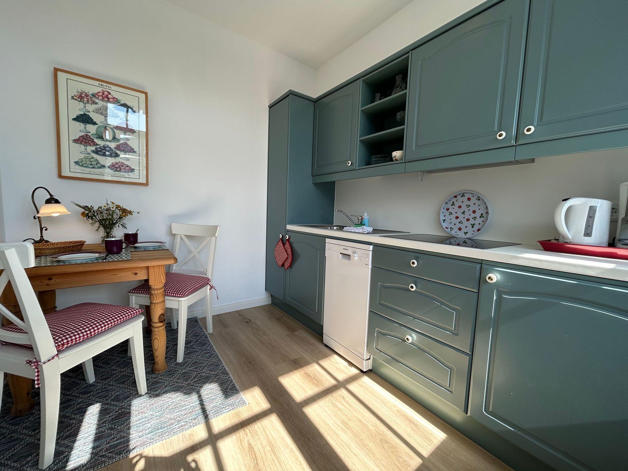 Das geräumige Wohnzimmer, das Schlafzimmer mit Doppelbett (1,80 m x 2,00 m) und die separate Küche inklusive Spülmaschine und Mikrowelle bieten viel Platz. Das Bad wurde komplett neu renoviert.