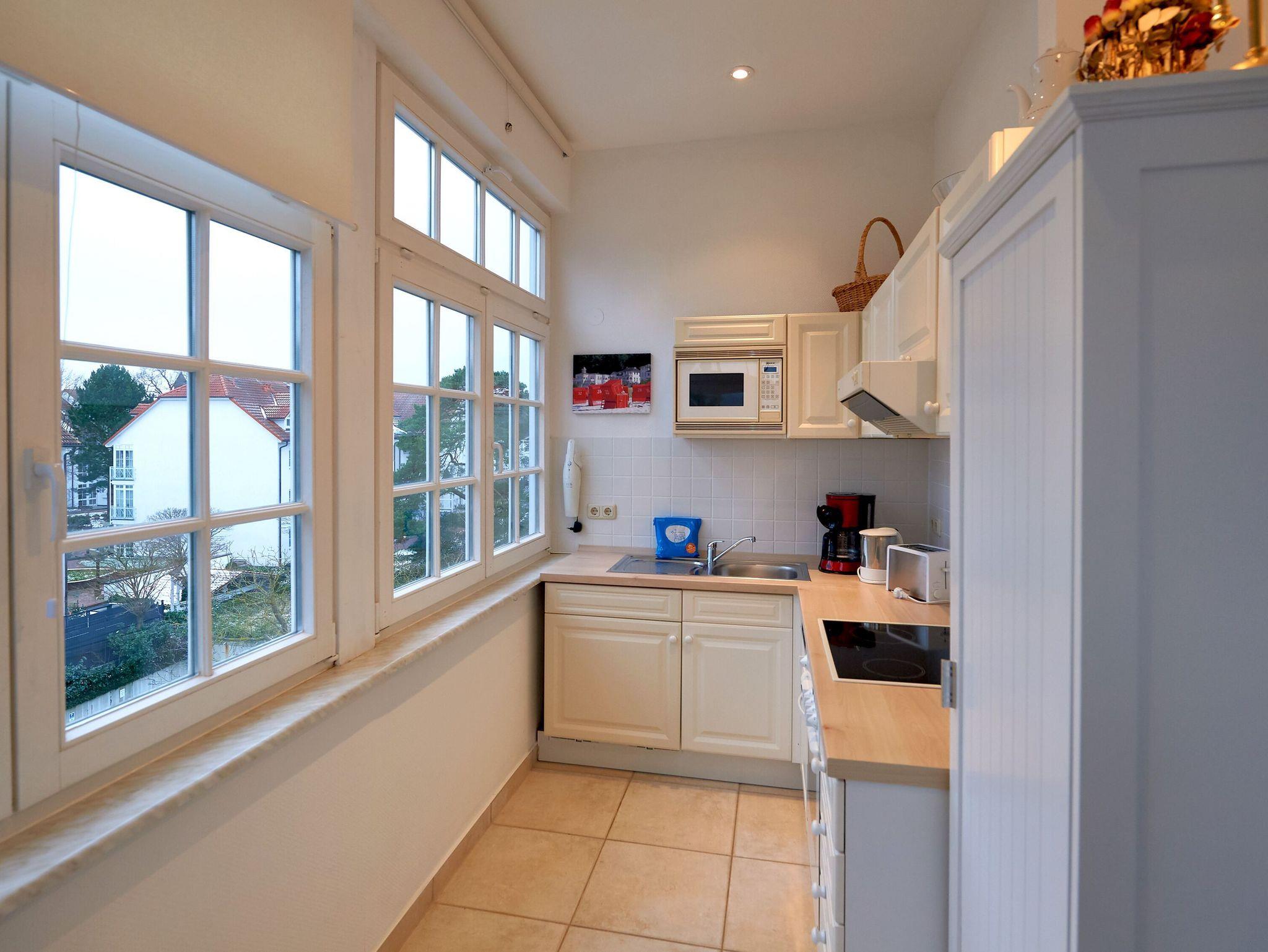 Das Apartment Nr. 9 erwartet Sie im zweiten Stock und ist bequem mit dem Aufzug zu erreichen. Sie beziehen eine außerordentlich freundliche, helle 2-Raum-Wohnung (45 qm) mit im Wohnraum integrierter, komplett ausgestatteter Küche in der sonnigen Veranda. Die Wohnung ist für 1-3 Personen geeignet.