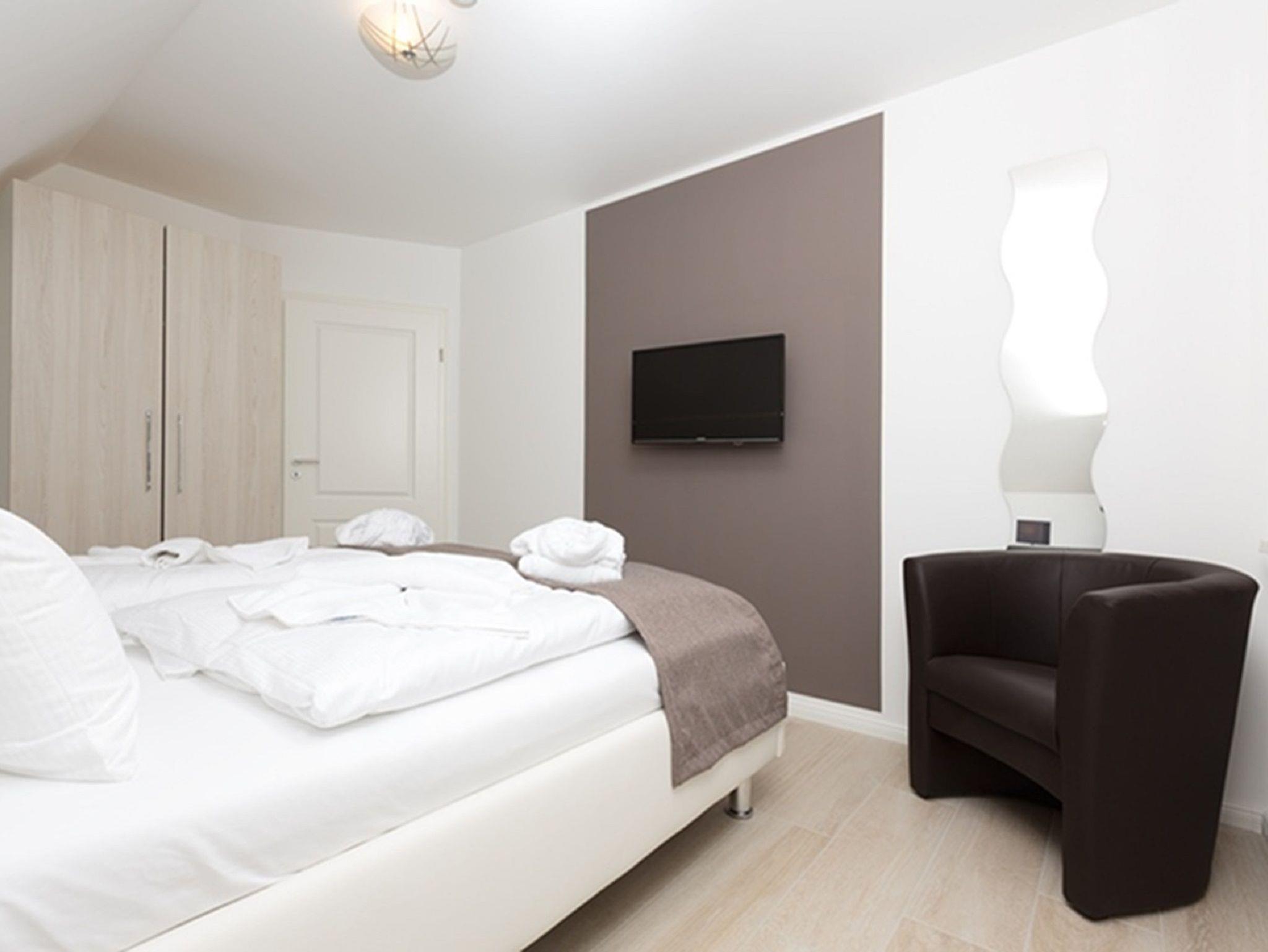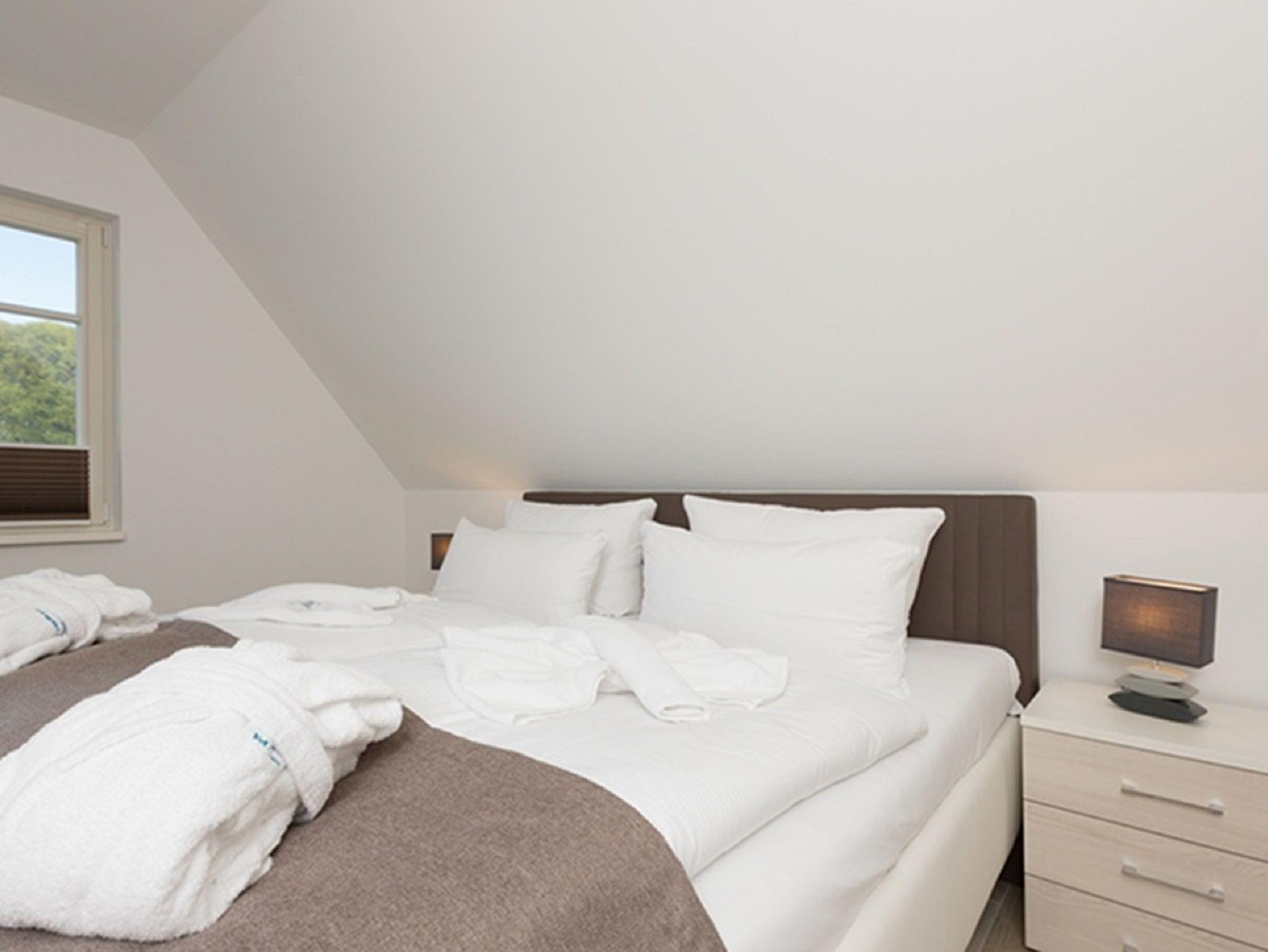 Im Obergeschoss finden Sie die 3 Schlafzimmer wobei zwei mit Doppelbetten sowie geräumige Kleiderschränken und das dritte mit zwei Einzelbetten sowie Kommode ausgestattet sind. Zwei Schlafzimmer verfügen über einen Flachbildfernseher.