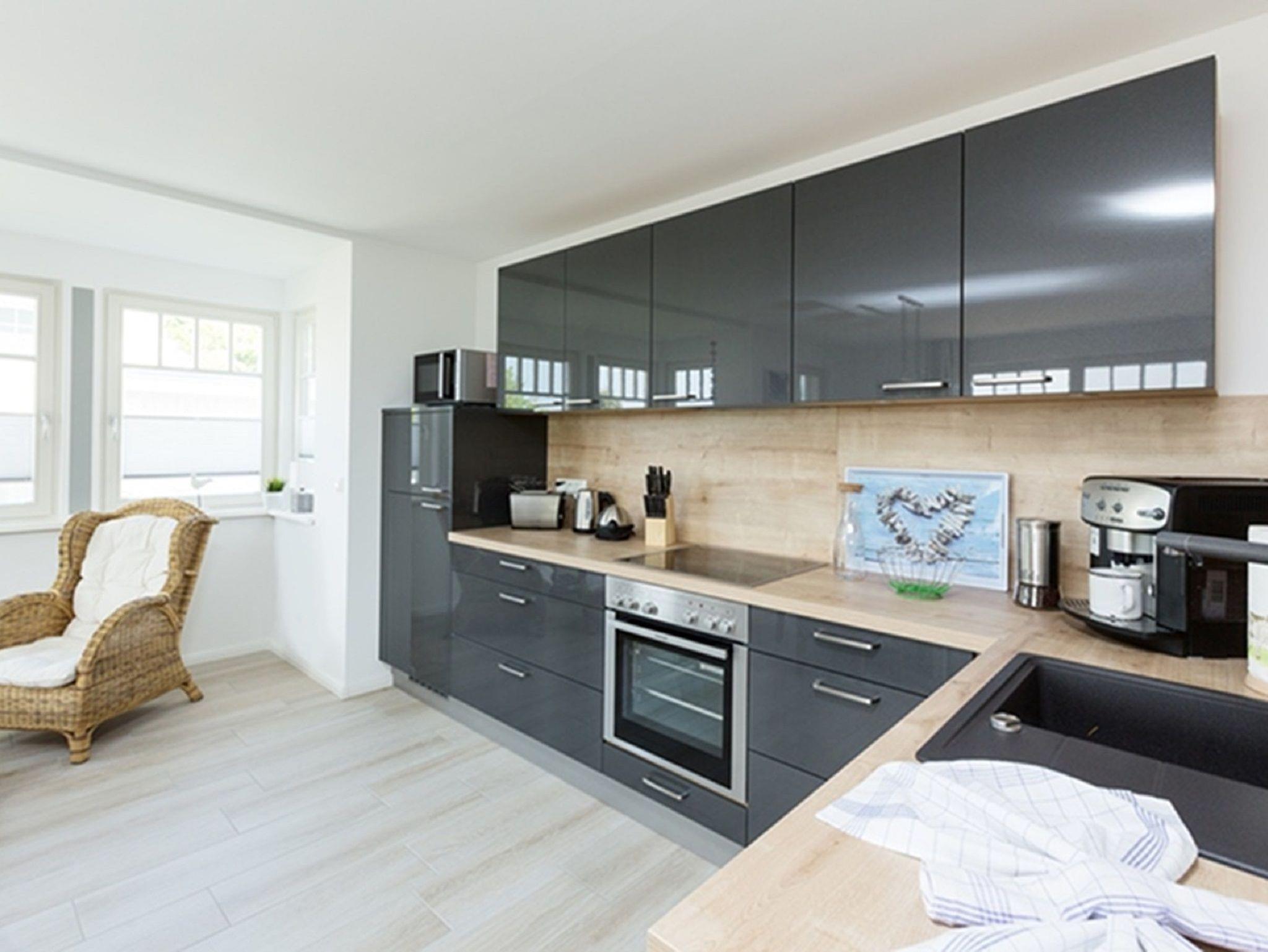 Die komplett ausgestattete Küche hat einen großen Kühlschrank mit Gefrierfach, Mikrowelle, Cerankochfeld mit Backofen, Wasserkocher, Kaffeemaschine, Toaster und einem Kaffeevollautomat von DeLonghi gehören mit zur Ausstattung.