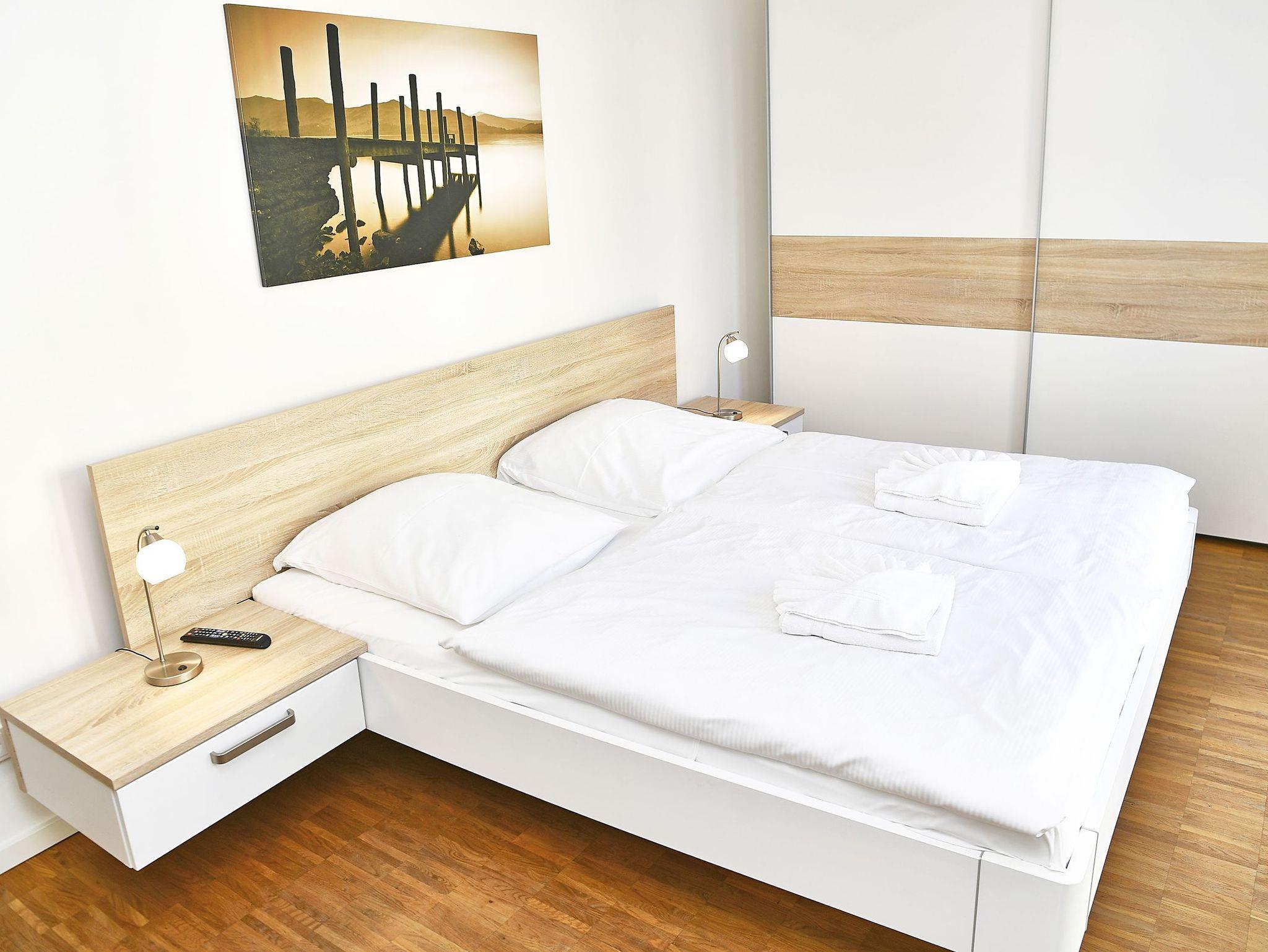 Im Schlafzimmer können Sie sich in einem bequemen Doppelbett (1,80 m x 2,00 m) mit verstellbaren Lattenrosten und einem weiteren Flachbild-Fernseher erholen. Im großen Kleiderschrank ist Platz für Ihre Urlaubsgarderobe.